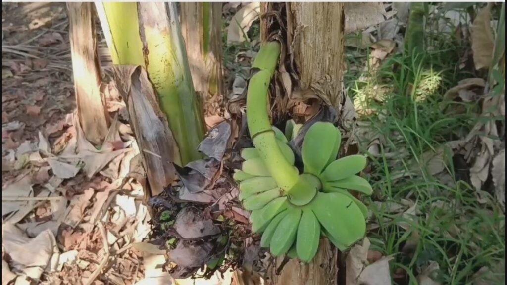 ช่วงลำต้นด้านปลาย ได้แห้งกรอบเหมือนต้นกล้วยตาย แต่บริเวณกลางลำต้น ที่ออกเครือ ถึงรากกลับเขียวอุดมสมบูรณ์ เหมือนต้นกล้วยปกติ สอบถามนางกาญจนา ภรรยาผู้ใหญ่บ้าน ทราบว่าตนเองมีอาชีพทำนาและทำสวนกล้วยน้ำว้า เพื่อตัดเครือส่งขายโรงงานแปรรูปทำกล้วยฉาบ ซึ่งตนเองได้ปลูกกล้วยน้ำว้าไว้ประมาณ10ไร่ และปลูกกล้วยน้ำว้าไว้กินเองที่สวนหลังบ้าน