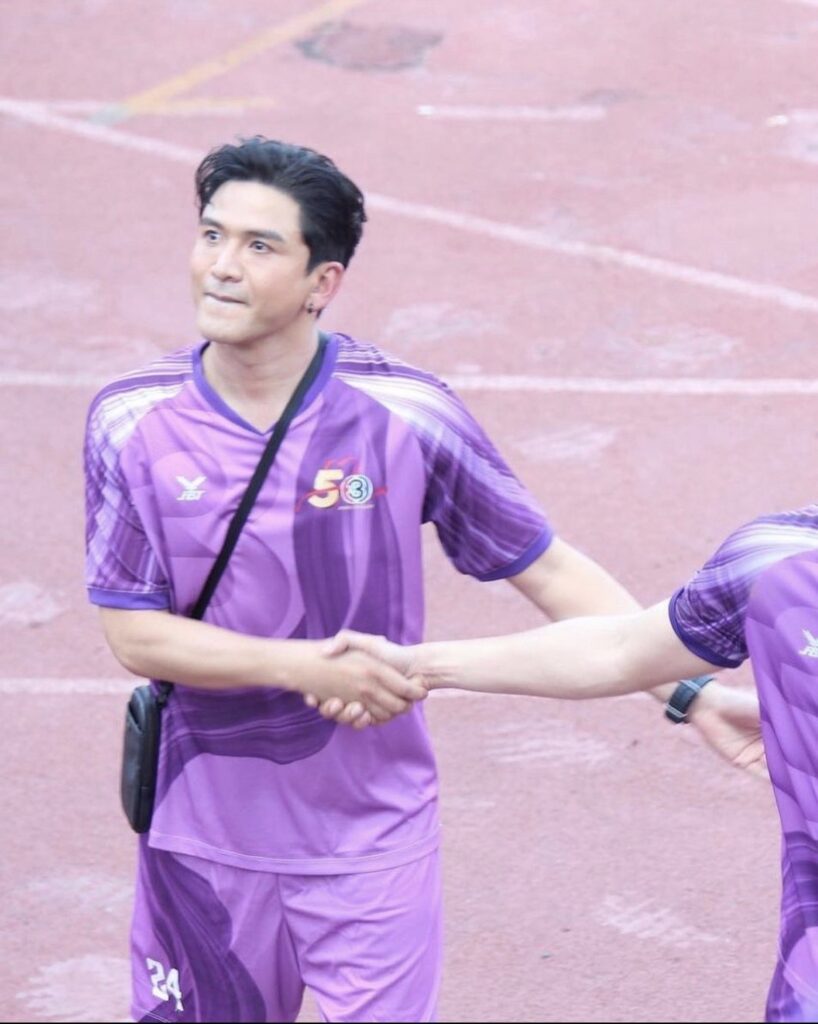 “และคุณหมอเลยแนะนำว่าปีนี้อย่าพึ่งเตะฟุตบอลเลย เพราะแดดร้อนมาก อากาศก็ฝุ่นเยอะ เลยอยากให้ดูแลสุขภาพ ผมก็เลยทำได้แค่เชียร์น้องๆอยู่ข้างสนามอย่างที่เห็น ……แต่ก็กลายเป็นข้อดีครับที่ผมได้เห็นภาพบรรยากาศแฟนๆดาราศิลปินช่อง3ทั้งหมด ทุกคนน่ารักมากจริงๆ ไม่ว่าคุณจะเป็นติ่งคนไหน เป็นแฟนคลับใคร คุณก็ยังมีรอยยิ้มให้ผม ตะโกนชื่อผม โบกมือให้ผม ขอบคุณมากๆเลยนะครับ”