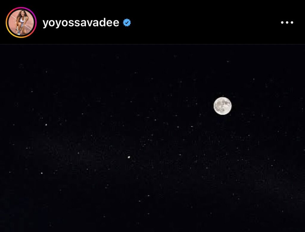 ล่าสุด “โย ยศวดี” เองก็ได้มีการดพสต์ภาพท้องฟ้าในเวลากลางคืน ที่มองเห็นดวงจันทร์ โโยไม่มีแคปชั่นใดๆ