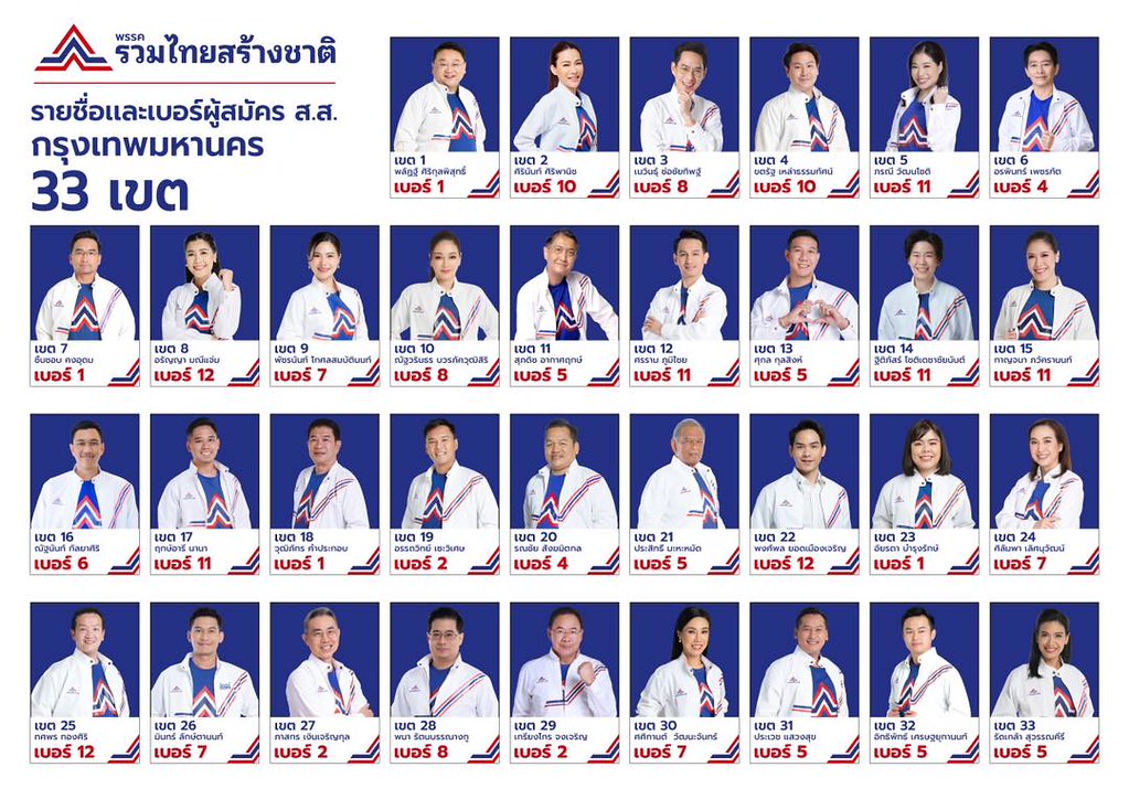เช็คเบอร์ผู้สมัคร ส.ส.กทม.พรรครวมไทยสร้างชาติ (รทสช.) ทั้ง 33 เขตเลือกตั้ง
