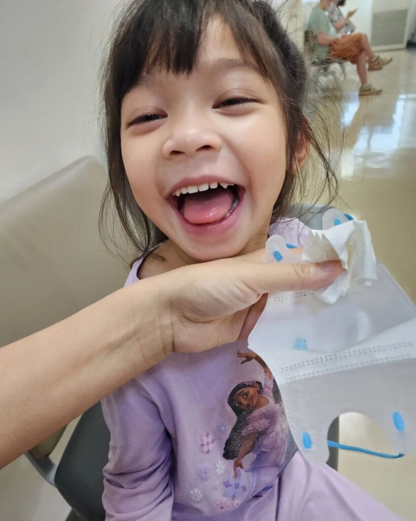 “ตอนที่หมอคีบออก มันต้องเจ็บมากแน่ๆเลยใช่ไหมแม่” แล้วซักพักก็ได้ยินเสียงปราง “ฮัดเช่ยยย” อย่างแรง แม่รีบเปิดแมสดู เจ้าหมีตัวสีฟ้าออกมาแล้วค่าาาาา ดูหน้าปรางได้ว่าดีขนาดไหน สงสารแต่ก็ขำ คราวหน้าไม่กล้าแล้วแน่นอน..”
