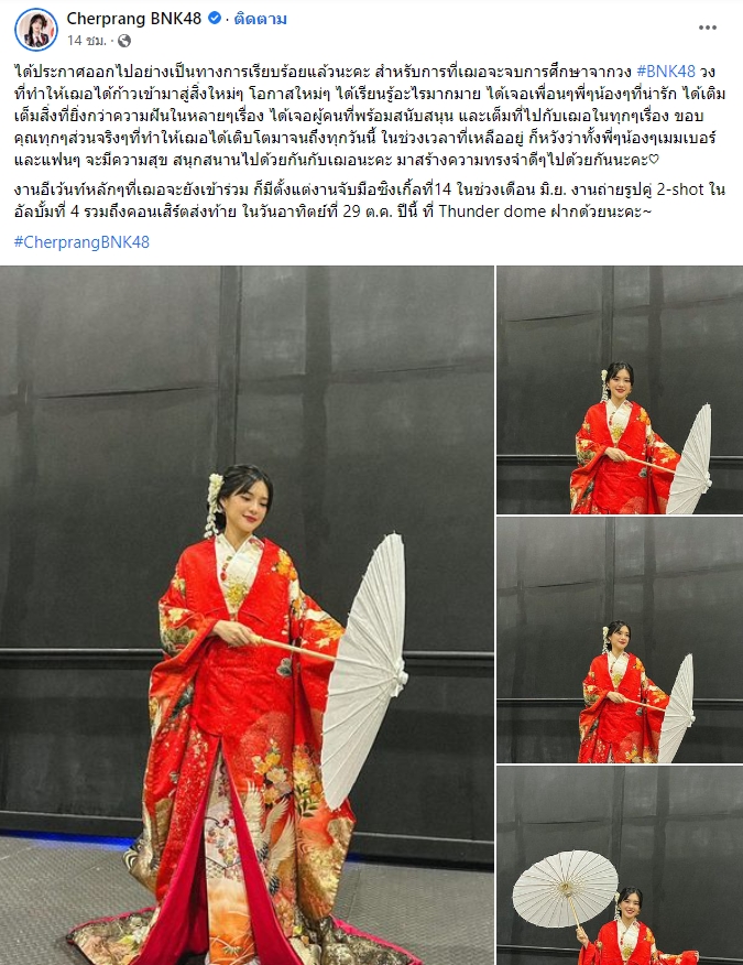 แฟนๆใจหาย! เฌอปราง BNK48″ ประกาศจบการศึกษาอย่างเป็นทางการ