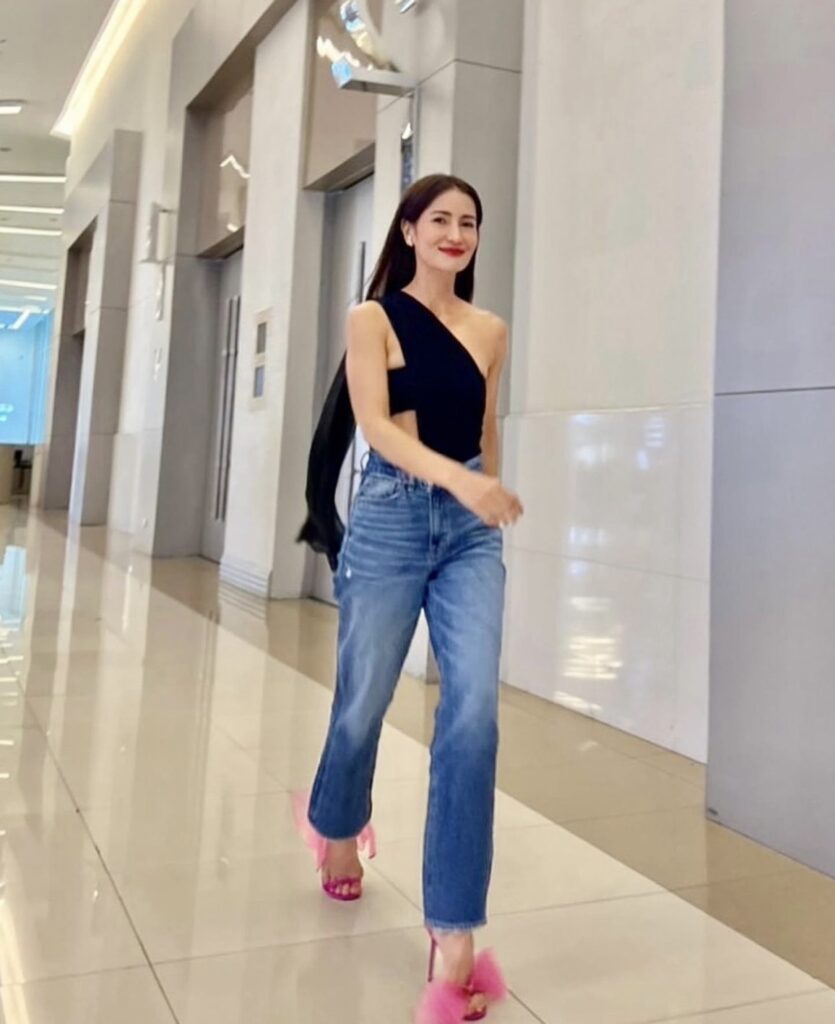 เริ่มต้นที่ตัวแม่ “แอน ทองประสม” มาในลุคสวยและแพงมาก หยิบชุดว่ายน้ำสีดำอมตะ พร้อมลูกเล่นกรุยกราย มาแมตซ์กับกางเกงยีนส์สีซีด พร้อมจิกส้นสูงสีชมพูชมใจ เด่นสง่าสวยเป๊ะตั้งแต่หัวจรดปลายเท้า