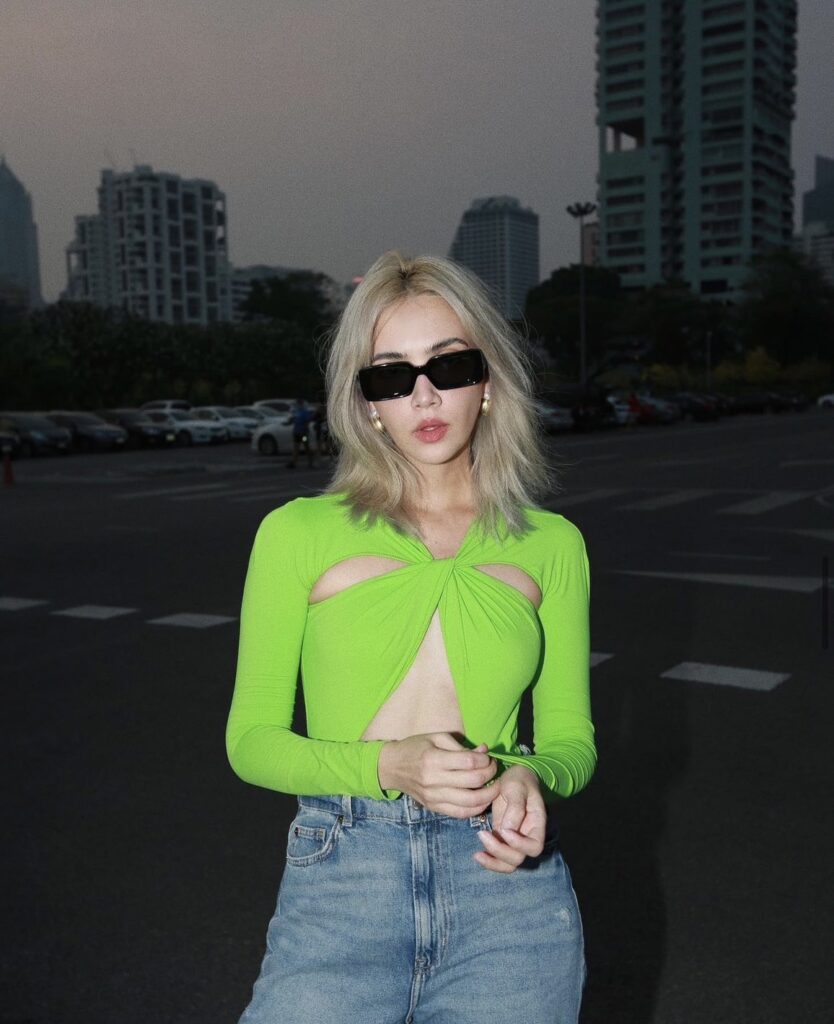 ส่วนคนที่ต้องการความแรง นีออนนีใจ อยากโดดเด่นในคืนสงกรานต์ ต้องดูสองสาว “แมท ภีรนีย์” และ “ซาร่า เล็กจ์” เป็นตัวอย่าง เพิ่มลูกเล่นด้วยกระโปรงหนังสีดำ ชูรสให้ชุดว่ายน้ำสีนีออนเป็นนางเอก หรือจะหยิบแว่นตาปังๆมาจับคู่ ก็ทำให้สตรีทครั้งนี้ไฟลุก