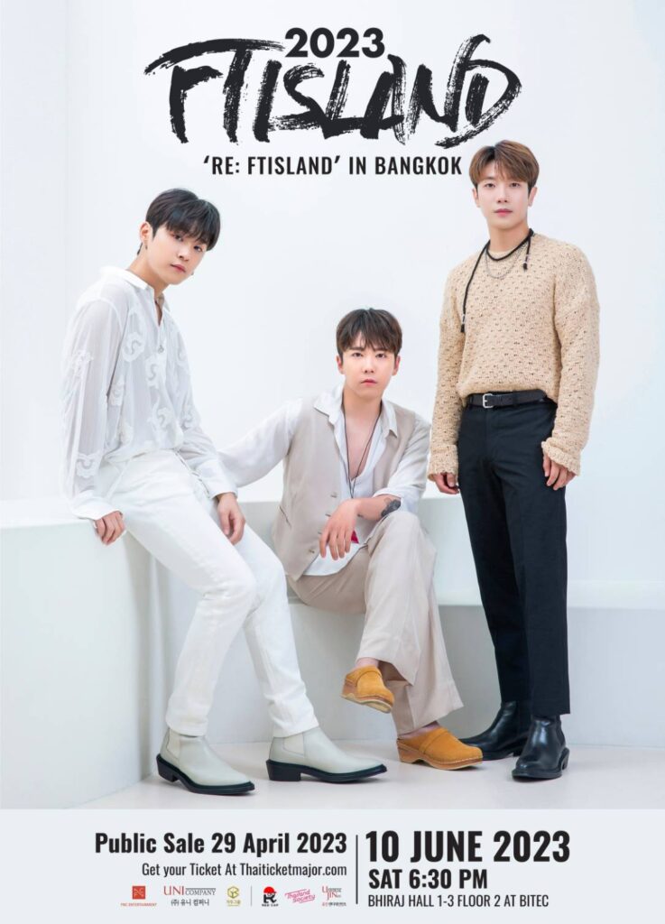 FTISLAND วงดนตรีป็อป-ร็อคสัญชาติเกาหลีที่เดบิวต์มามากกว่า 15 ปีแล้วพวกเขาสร้างสมประสบการณ์มากมาย ไม่เพียงแค่ทางด้านงานเพลง แต่รวมถึงงานในวงการบันเทิงมากมายไม่ว่าจะเป็น ละคร พิธีกร ละครเวที ดีเจ หรือวาไรตี้ พวกเขามีเพลงฮิตที่ทุกวันนี้เรายังสามารถร้องตามกันได้สุดเสียงมากมายอย่างSeverely, I Hope, Love Sick, I Wish, Hello Hello, Bad Woman, Missing Youและ After Loveความเป็น Entertainer ของพวกเขาทำให้ในทุกๆ คอนเสิร์ตสร้างความประทับใจให้กับผู้คนที่ได้ไปดูทุกครั้ง คอนเสิร์ตของ FTISLAND จึงเป็นคอนเสิร์ตที่คุณควรดูสักครั้งในชีวิต หลังจากที่พวกเขาห่างหายจากคอนเสิร์ตที่เมืองไทยมากว่า 5 ปี พวกเขาทั้ง3อีฮงกิ,อีแจจิน และ ชเวมินฮวานก็ปักหมุดกลับมาพบเจอกับพรีมาดอนน่าชาวไทยอีกครั้ง โดยหลังจากที่พวกเขาปล่อยมิวสิควิดีโอเพลง DOOR ซึ่งเป็นเพลงซิงเกิลที่ 19 ของฝั่งญี่ปุ่น พวกเขาก็เดินสายทัวร์คอนเสิร์ตที่ประเทศญี่ปุ่นภายใต้ชื่อ‘FTISLAND Autumn Tour 2022 – Door‘ ทันทีแต่พวกเขาไม่ยอมปล่อยให้พรีมาดอนน่าที่ประเทศอื่นต้องรอคอนเสิร์ตใหญ่นาน พร้อมประกาศทัวร์คอนเสิร์ตในประเทศอื่นเพิ่มเติมขึ้นทันที โดยทัวร์คอนเสิร์ตครั้งนี้จะเริ่มที่ไทเป ต่อด้วย มาเก๊าและแน่นอนที่ประเทศไทย