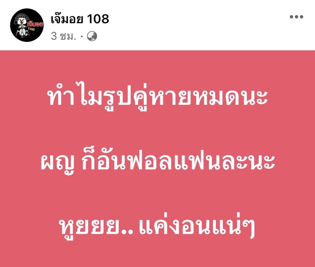 “ทำไมรูปคู่หายหมดนะ ผญ ก็อันฟอลแฟนละนะ หูยยย.. แค่งอนแน่ๆ”