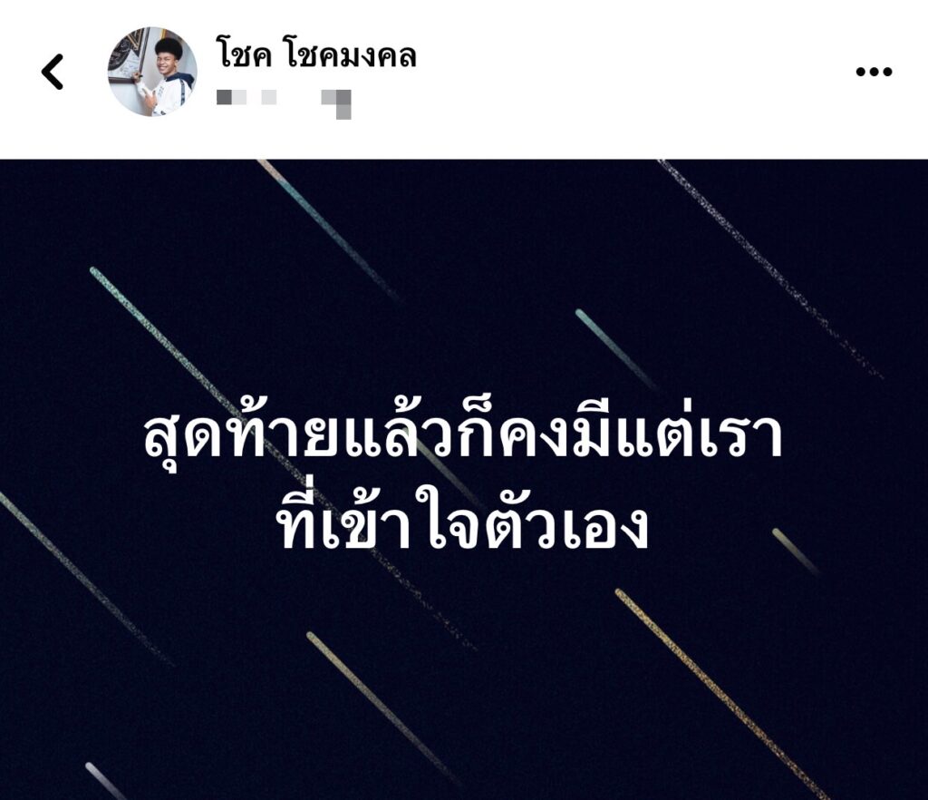 โดยระบุข้อความว่า ” ขอให้เธอมีความสุขกับความทรงจำเก่าๆสุดท้ายแล้วก็คงยังมีแต่เราที่เข้าใจตัวเอง ” แต่ต่อมาหนุ่มโชคได้ออกมาโพสต์สยบข่าวส่อแววเลิก โดยโพสต์ภาพแฟนสาวพร้อมแคปชั่น ” ถึงเธอจะขี้บ่น แต่ฉันก็รักเธออยู่ดีเพราะเธอคือแม่ของลูก และคู่ชีวิตของฉัน”