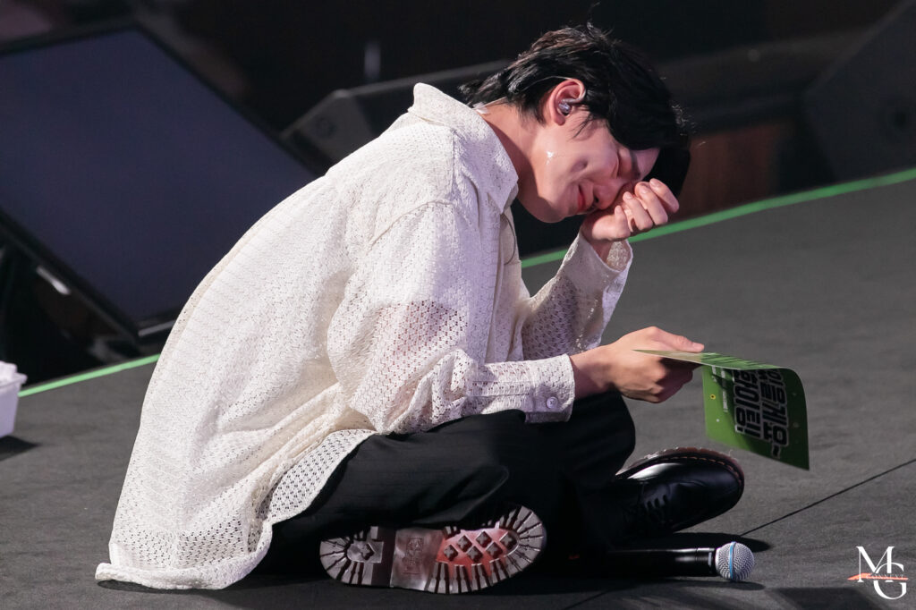“ความรู้สึกของผมตอนนี้ไม่รู้จะอธิบายออกมาเป็นคำพูดได้ยังไง มันประทับใจ ซาบซึ้งใจมากๆ ครับ ผมไม่ได้เป็นคนที่ร้องไห้เก่งขนาดนี้นะครับ แต่ว่ามันเป็นความรู้สึกที่ถ้าไม่เจอกับสถานการณ์แบบนี้ก็อาจจะไม่เข้าใจความรู้สึกของผมที่รู้สึกในตอนนี้ แต่หวังว่าผมกับแฟนๆ ทุกคน จะอยู่ในความรู้สึกแบบนี้ไปด้วยกันไปนานๆ นะครับ ขอบคุณทุกๆ คนที่มางานวันนี้นะครับ ทุกคนมีความสุขเหมือนผมใช่ไหมครับ เพราะทุกคนมางานวันนี้ ผมเลยได้สร้างความสุขไปพร้อมกับทุกคน (ภาษาไทย) “รักทุกคนมากๆ ครับ แล้วพบกันใหม่นะครับ”