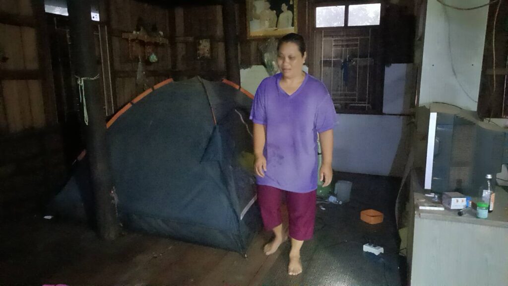นางมยุรีกล่าวว่าเป็นประจำทุกปีที่ฝูงแมลงปีกแข็งแต่มาอาศัยอยู่ที่บ้านไม้หลังนี้ เท่าที่รู้มาเพื่อนบ้านที่อยู่หมู่บ้านติดกันก็จะมีฝูงแมลงปีกแข็งมาอาศัยอยู่1-3หลังคาเรือนหรือบางพื้นที่จะอาศัยอยู่ที่วัด ถึงฤดูกาลก็ต้องทำใจเวลานอนต้องอาศัยการเต้นนอนอยู่ในบ้าน กันไม่ให้แมลงเข้าหูอาจจะเป็นอันตรายต่อร่างกาย และจะต้องเก็บกวาดบ้านทุก 2 ชั่วโมงเพื่อที่จะทำลายแมลงปีกแข็ง ในส่วนยาฆ่าแมลงจะใช้ปริมาณที่เหมาะใช้เกินไม่ได้เพราะต้องอยู่และนอนอยู่ในบ้านเป็นเวลานาน อาจส่งผลกระทบต่อสุขภาพปีนี้แมลงปีกแข็งเพิ่งจะเข้ามาอยู่ในบ้านเนื่องจากมีฝนตกช้า ถ้าฝนตกเร็วฝูงแมลงปีกแข็งก็จะมาเร็วคาดว่าภายในอาทิตย์นี้จะมีฝูงแมลงปีกแข็งเพิ่มขึ้นอีกเท่าตัว