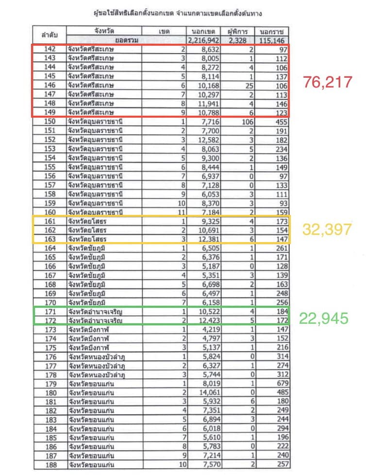 โดยจับสังเกต พบว่า มีผู้ใช้สิทธิเลือกตั้งล่วงหน้าเยอะผิดปกติใน 3 จังหวัด คือ อำนาจเจริญ ศรีสะเกษ และยโสธร เกือบแสนคน เมื่อเทียบกับสถิติเดิมของการเลือกตั้งล่วงหน้าเมื่อปี 2562