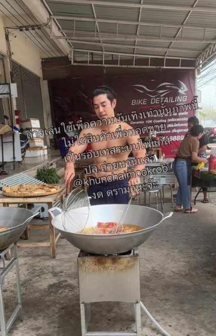 แต่นอกจากจะมีดีทั้งหน้าตา และความสามารถแล้ว ล่าสุดบอกเลยว่าปังมาก เมื่อหนุ่ม “อาร์ต” ผันตัวเป็นพ่อค้าขายหมูกรอบที่บอกเลยว่าขายดิบขายดีจนถึงขั้นต้องขยายสาขาเลยทีเดียว แต่แน่นอนว่าอากาศช่วงนี้มันร้อนอบอ้าวแบบสุดๆงานนี้เลยทำให้แฟนๆแห่เข้ามาถามว่า “อยู่หน้าเตาไม่ร้อนบ้างหรอ ”