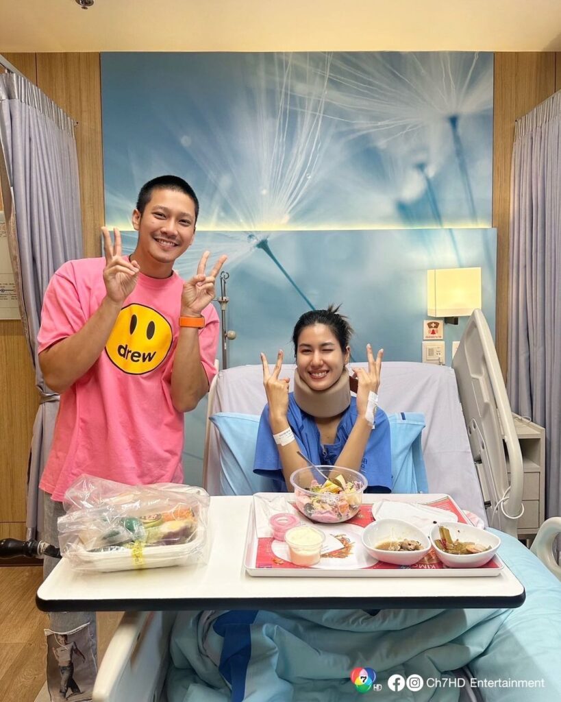 นอกจากนี้ยังโพสต์ภาพพระเอกคู่จิ้นอย่าง “ยูโร ยศวรรธน์” ได้เดินทางมาเยี่ยมและให้กำลังใจถึงโรงพยาบาลอีกด้วย