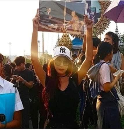 และตอนในหลวงทรงประชวร เราไปเซ็นเยี่ยมถวายพระพร ที่ศิริราชหกครั้ง จนฝันเห็นท่าน! ไปงานพิธีเยี่ยมพระศพ! ไปงานถวายพระเพลิง! รอทั้งวันก้ออยากจะไป!!ปัจจุบันนี้ เรายังคงทำบุญ แก่มูลนิธิครอบครัวทหารผ่านศึกเงียบๆ เราเคยทำเพลง ทำmvด้วยตัวเอง เกี่ยวกับทหาร ที่ต้องจากคนรัก ยอมสละชีพเพื่อชาติ ท้ายเพลงเราเขียนไว้ว่า ขอสดุดีทหารกล้า และตลอดมา รายได้จากเพลงนั้น ยังคงมอบให้มูลนิธิครอบครัวทหารผ่านศึก! เราไปงานไนน์เอ็นเตอร์เทน เพราะเมื่อก่อน ที่ช่อง9 เราคือหนึ่งในดารา ที่อาสาไปช่วยรับโทรศัพท์ หาเงินบริจาคช่วยประชาชน จากอุทกภัยต่างๆ นับสิบครั้ง!! ท่านพุทธทาสกล่าวว่า “โลกนี้ไม่มีคนที่ผิด มีแต่คนที่ไม่รู้” เราเอง ยังเคยหลงเชื่อคน ที่คำพูดสวยหรูจากรูปลักษณ์ภายนอกเลย!เชื่อ จนเค้าหมิ่นทหาร จึงตาสว่างงานไนน์เอ็น ที่เรากล่าวมา เราเชื่อเสมอว่า โลกนี้ไม่มีเรื่องบังเอิญ ปกติ เราไม่เคยเข้าไปนั่งในงาน ถ่ายรูปเสร็จก็กลับ นี่ต้องไปประกาศรางวัล และยืนยันว่า ยังไงก็ต้องพูด! งานนี้เป็นงานศักดิ์สิทธิ์อันทรงเกียรติ ไม่ใช่โรงหนัง ขนาดพี่เบิร์ด ธงชัย อาตู่ นพพล เหล่าศิลปินแห่งชาติ และปูชนียบุคคลทุกคน ยังยืนขึ้นให้เกียรติงานและสถานที่ แต่เด็กเหล่านี้ ซึ่งก็นั่งห่างพวกท่านไปไม่กี่แถว กลับไม่ยืน นั่งเล่นมือถือ!