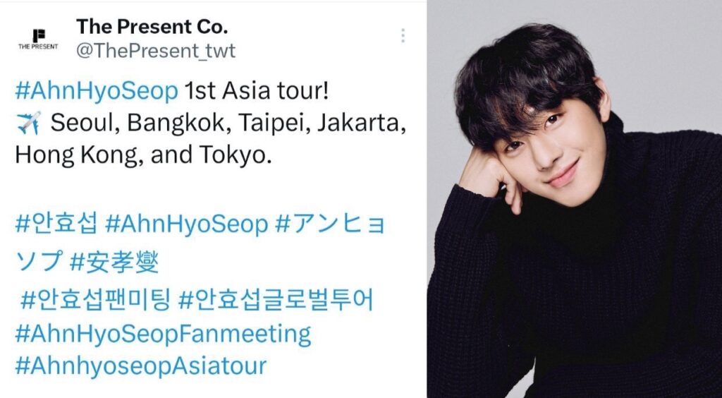 งานนี้ต้นสังกัด The Present ประกาศข่าวดี เอเชียทัวร์แฟนมีตติ้งมาแน่! โดยจะเริ่มขึ้นที่กรุงโซล ในวันที่ 16 กรกฎาคม ตามด้วย กรุงเทพฯ, ไทเป, จาการ์ตา, ฮ่องกง และ โตเกียว แฟนๆ ชาวไทยรอติดตามรายละเอียดของงานแฟนมีตติ้งครั้งนี้เพิ่มเติมกันได้ทางออฟฟิเชียลแฟนเพจของผู้จัดงาน Feoh Thai https://www.facebook.com/FeohTH ทวิตเตอร์ @FeohThai https://twitter.com/FeohThai และอินสตาแกรม FeohThai (@feoh.thai) https://www.instagram.com/feoh.thai/