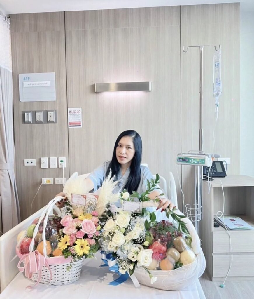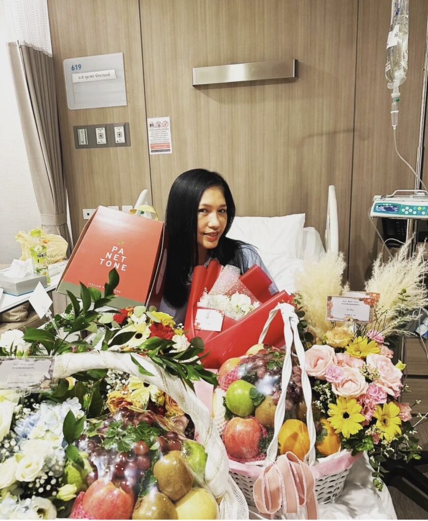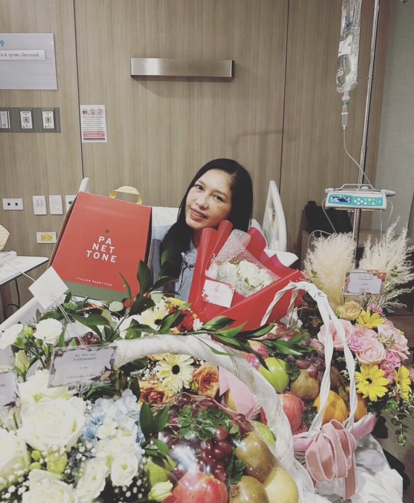 “หลายคนถามว่าเอ้เป็นอะไร??คือ..เอ้วูบในห้องน้ำค่ะ!!ล้มลงมาหัวฟาดชักโครกแล้วก็ลงมาฟาดพื้นนิ่งไปแป๊บนึง!!!พอดีลูกบุญธรรมอยู่ด้วยถือว่าโชคดีก็เลยพามาแอดมิดที่โรงพยาบาลนวเวชค่ะตอนนี้อาการพ้นขีดอันตรายแล้วนะคะขอบคุณทุกคนที่เป็นห่วงค่ะ💓💓💓”