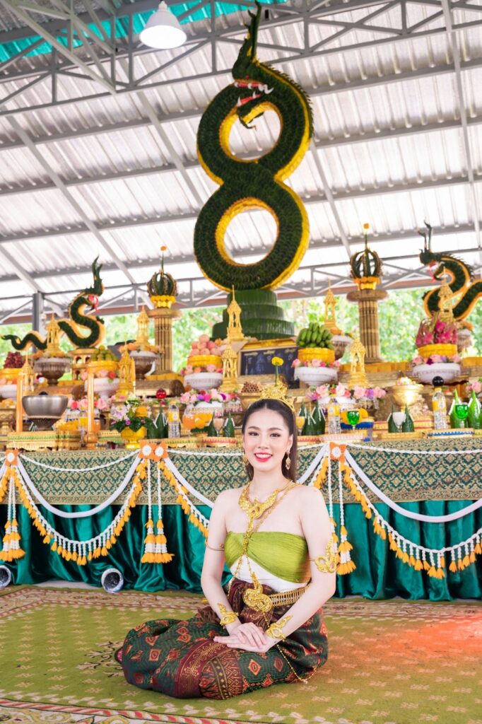 สมเป็นสายมูฯ ตัวจริงสำหรับ ฟิมเฟีย-กชกร สุกประเสริฐ หรือ “ฟิมเฟีย กชกร” สาวน้อยแสนซน ศิลปินลูกทุ่งอินดี้น้องใหม่ค่ายข้าวสารซาวด์ เจ้าของเพลง Hello ล่าสุด วันที่ 6 เดือน 6 ปี 66 ถือเป็นวันดีที่สาวฟิมเฟีย ได้เดินทางไปกราบไหว้และรำบวงสรวงพญานาค แก่พ่อปู่ศรีสุทโธ-แม่ย่าศรีปทุมมา บริเวณหน้าเกาะคำชะโนดวังนาคินทร์ดินแดนพญานาคราช วัดป่าคำชะโนด จ.อุดรธานี ด้วยชุดไทยประยุกต์ สีเขียวตองอ่อน โดยสาวฟิมได้รำถวายเพื่อขอพรให้เส้นทางชีวิตที่เลือกไม่ว่าจะเป็นการทำธุรกิจ หรือการทำงานบนเส้นทางบันเทิง ให้ประสบความสำเร็จในทุกๆด้าน รวมไปถึงเพลง Hello ซิงเกิ้ลแรกที่เพิ่งปล่อยไป และซิงเกิ้ลเพลงที่ 2 ที่กำลังจะคลอดออกมาให้แฟนๆได้ฟังอีกด้วย