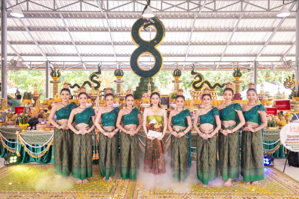 ฟิมเฟีย-กชกร กล่าวหลังจากได้รำบวงสรวงพญานาค ว่า “วันนี้ฟิมรู้สึกดีใจ ปลื้มใจมากที่ได้มารำถวายแก่ พ่อปู่ศรีสุทโธ-แม่ย่าศรีปทุมมา ที่วัดป่าคำชะโนด วัดศักดิ์สิทธิ์คู่บ้านคู่เมืองคนอุดรฯ และคนอิสาน เพราะพื้นเพ ฟิมเป็นคนอิสาน เกิดและโตที่อิสาน จังหวัดอุดรธานี เราก็ถือว่าเราเป็นลูกหลานพญานาค วันนี้เป็นวันที่ 6 เดือน 6 ปี 66 ถือว่าเป็นวันดีมากๆวันนึง ฟิมเลยชวนเพื่อนๆ และครูโบว์ จากค่ายข้าวสารซาวด์ มาร่วมรำถวายแก่พ่อปู่แม่ย่า ซึ่งเราได้เดินทางมาซ้อมรำก่อนวันจริง 1 วัน ฝึกซ้อมไม่นาน เพราะฟิมมีพื้นฐานอยู่แล้ว ด้วยการแกะท่ารำจาก YouTube แล้วมาเรียนต่อทวนท่าเพิ่ม แต่พอถึงวันจริงก็แอบตื่นเต้น เพราะฟิมยืนรำอยู่หน้าสุด เราเริ่มแต่งหน้าแต่งตัวกันตั้งแต่ตี 3 เริ่มรำกันตอน 11.18 ซึ่งเป็นเวลาดี ตอนแรกนึกว่าฝนทำท่าจะตก เพราะครึ้มมาก แต่พอถึงเวลาที่ต้องรำจริงๆ ท้องฟ้ากลับเปิดสว่างเลยค่ะ ตอนรำ ทุกๆคนที่รำขนลุกตลอดเวลา ก็ยิ่งรู้สึกศรัทธา จริงๆ ฟิมมารำถวายขอพรจากพ่อปู่แม่ย่าให้ปกปักษ์รักษาคุ้มครอง และขอให้งานต่างๆที่ฟิมได้ทำประสบความสำเร็จ รวมไปถึงการทำงานเพลง ทั้งเพลง Hello และเพลงที่ 2 ที่กำลังจะปล่อยเร็วๆนี้ด้วย ก็อยากให้ทุกๆคนช่วยติดตามเป็นกำลังใจให้ฟิมด้วยนะคะ ฝากติดตามผลงานเพลงของฟิม เพลง Hello ได้ที่ https://youtu.be/ei_alLvqjeM“ #Khaosansound #ฟิมเฟียกชกร #KhaosanEntertainment #HELLO