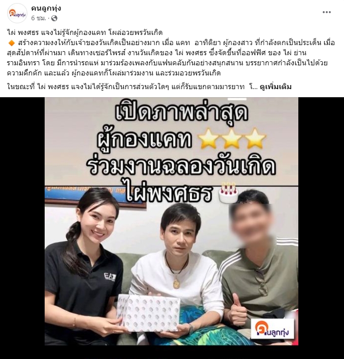 ล่าสุด เพจคนลูกทุ่ง ได้โพสต์ภาพ ระหว่าง ผู้กองแคท ร่วมเฟรมกับ ไผ่ พงศธ พร้อมเขียนข้อความว่า “ไผ่ แจงไม่รู้จักผู้กองแคท โผล่อวยพรวันเกิด สร้างความงงให้กับเจ้าของวันเกิดเป็นอย่างมาก เมื่อ แคท อาทิติยา ผู้กองสาว ที่กำลังตกเป็นประเด็น เมื่อสุดสัปดาห์ที่ผ่านมา เดินทางเซอร์ไพรส์ งานวันเกิดของ ไผ่ พงศธร ซึ่งจัดขึ้นที่ออฟฟิศ ของ ไผ่ ย่านรามอินทรา