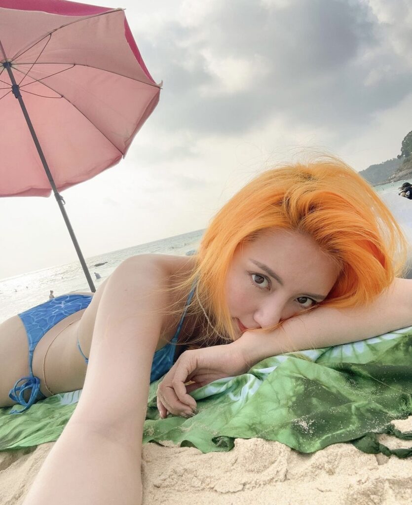 ล่าสุดทำเอาไอจีไฟลุกยิ่งกว่าเพลิงไหม้ เมื่อสาว “มิว” ออกมาปล่อยความเผ็ด นุ่งบิกินี่ตัวจิ๋ว นอนอาบแดด โชว์บอดี้หุ่นที่เป๊ะ อกเป็นอก เอวเป็นเอว ผิวขาวออร่า บวมสีผมสีส้มจี๊ดจ๊าดสว่างกระแทกตา นอนโพสท่าสุดเซ็กซี่ บอกได้คำเดียวว่าสะเทือนไปทั้งหาด