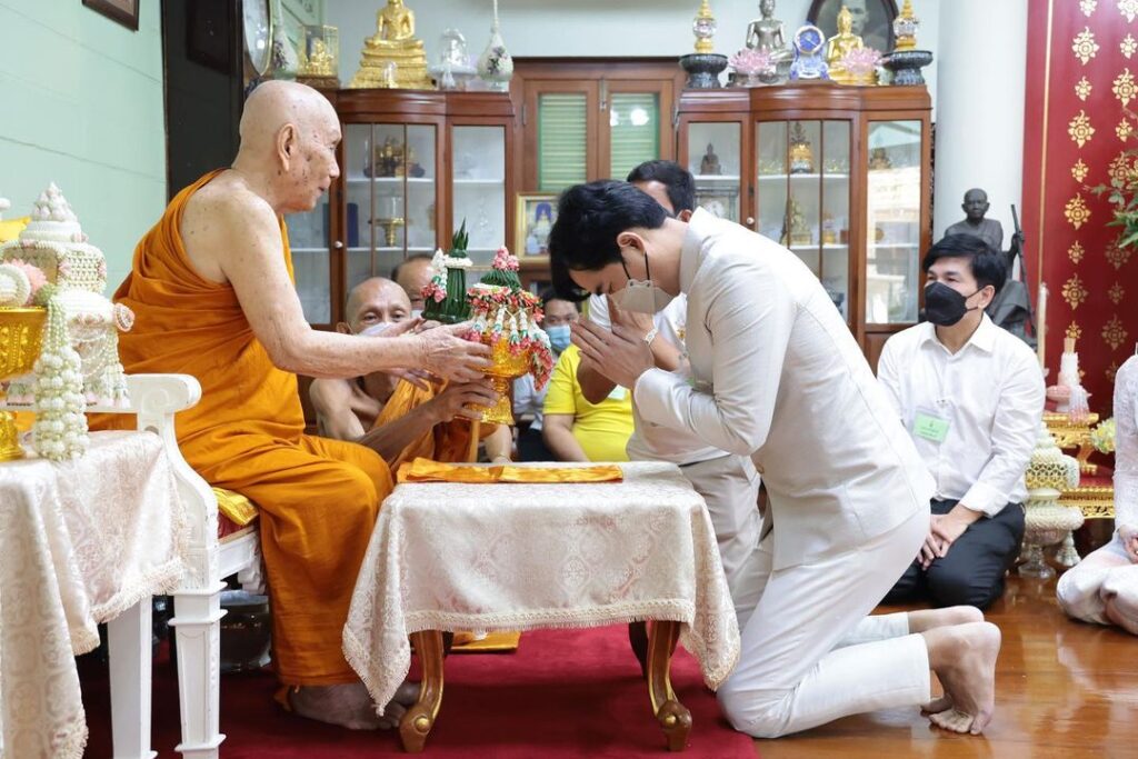 โดย หนุ่มเคลลี่ เปิดเผยว่า “ได้มีโอกาสเข้าเฝ้าขอพร กราบสักการะสมเด็จพระสังฆราช เป็นการไปขอพรเนื่องจากเป็นวันเกิดของพลอย เกิดวันที่ 2 แต่เราได้เข้าเฝ้าวันที่ 5 คือจริงๆ ก็เห็นภาพแล้วยังคิดและแซวตัวเองอยู่เลย สวมชุดไทยแล้วไปวัด ก็ดูเหมือนมาก แล้วก็ได้ไอเดียหลายอันอยู่ รู้แล้วว่าถ้าถึงวันแต่งจะต้องทำยังไง มีคุยกันเรื่องแต่ง ให้โซเชียลไม่ค่อยถูกแซวเท่าไหร่ เราก็แซวกันเองว่าน่าจะเอาช่างภาพมาด้วย ถ้าถึงวันจริงจะได้ไม่ต้องถ่ายกันใหม่