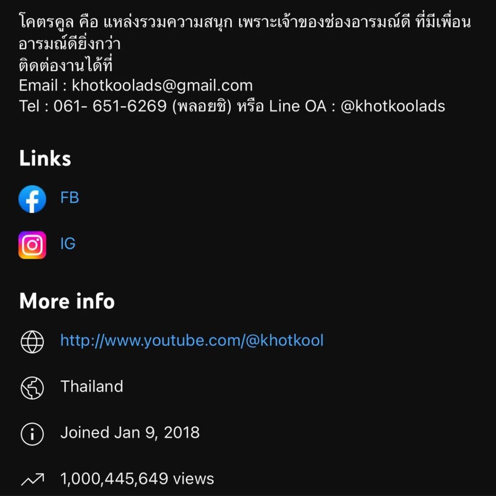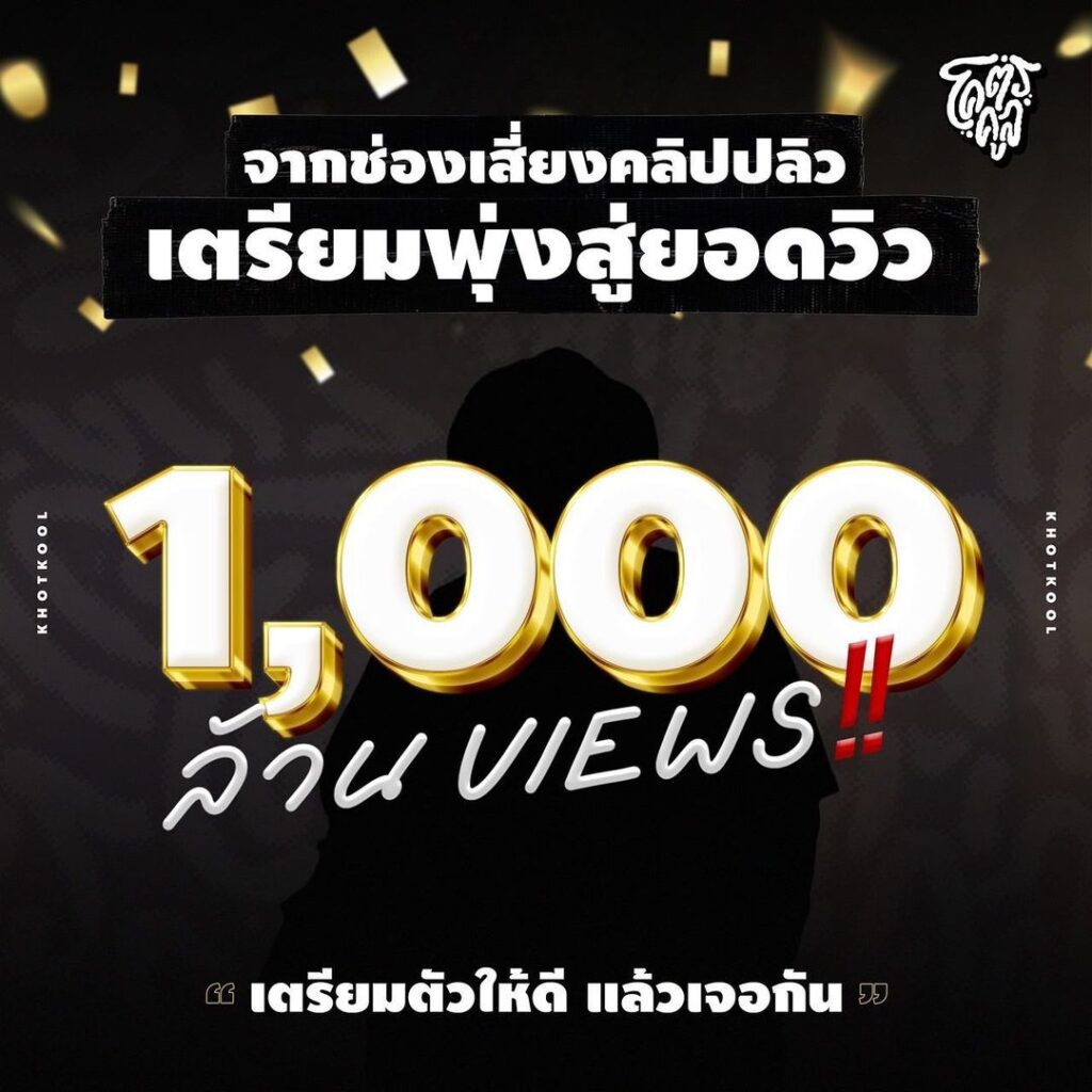 “1,000,000,000 พันล้านวิว!!! ใช่วะแม่งถึงแล้วจริงๆ ขอบคุณเพื่อนๆพี่ๆน้องๆ@khotkoolchannel ทุกคนที่เริ่มด้วยกันมาจากวันแรกจนถึงวันนี้จะให้ขอบคุณทั้งหมดใช้เวลาทั้งวันก็คงไม่พอ จากช่องที่เสี่ยงปลิวทุกวันมันมาไกลเกินฝันแล้วครับ