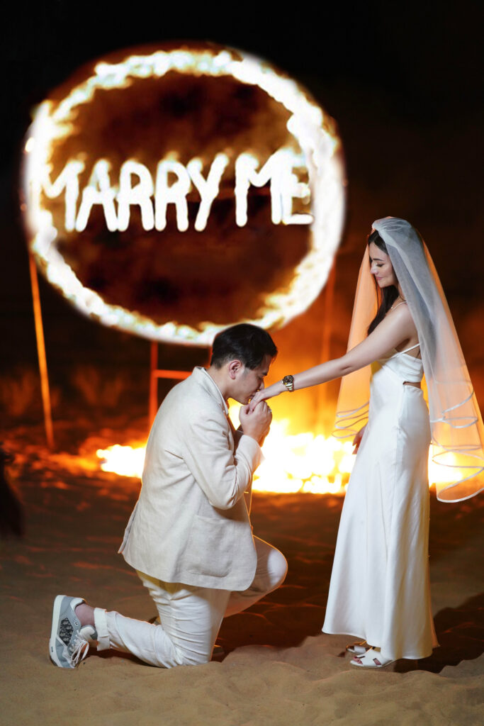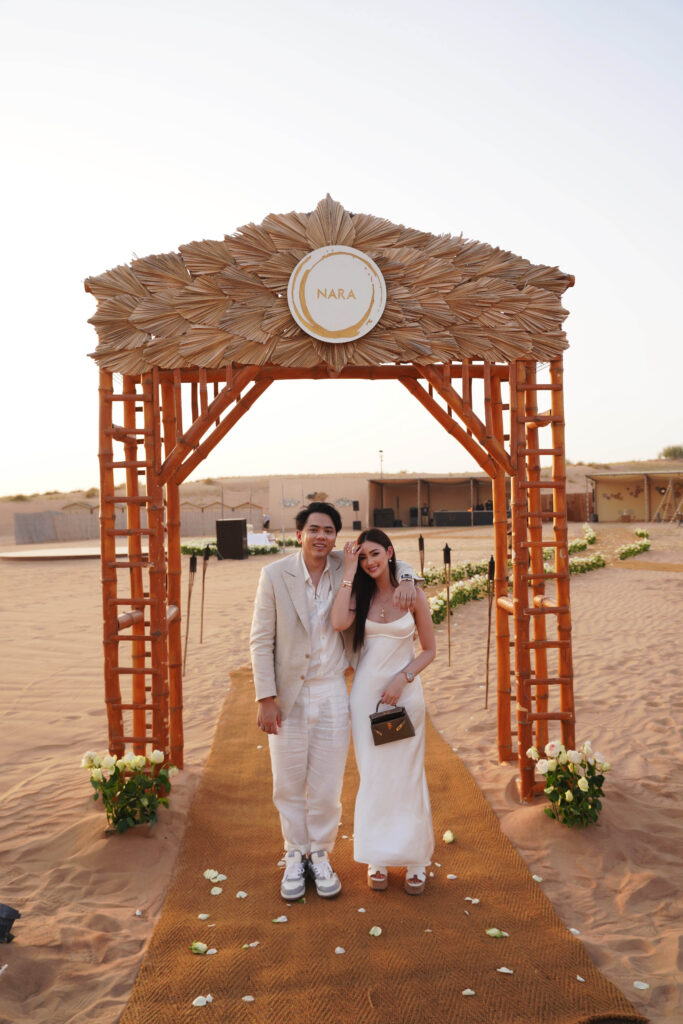 “ช่วงระหว่างที่ผมกำลังซุ่มทำเพลงใหม่ของวง DoubleDeep ผมก็คิดแผนเรื่องขอแต่งงานน้อง นนนี่ ไว้ในใจตลอดว่าจะขอเค้าที่ไหนดี คิดไว้เยอะมากทั้งในเมืองไทยและต่างประเทศ และพอดีกับที่ TransEuro Group ซึ่งเป็นพาร์ตเนอร์ที่ปรึกษาในการทำธุรกิจที่ดูไบติดต่อมาว่ามีธุรกิจที่น่าลงทุกมากมายผมเลยตัดสินใจเดินทางไปเลย วางแผนตั้งแต่เมืองไทยว่าต้องการเซอร์ไพรส์ขอแต่งงาน นนนี่ โดยเปลี่ยนบรรยากาศกลางทะเลทรายให้สวยงามเหมือนเรายกโรงแรมห้าดาวมาไว้กลางทะเลทราย ซึ่งยากมากแค่เดินสายไฟก็ยี่สิบกิโลแล้ว แถมยังมีการตกแต่งด้วยกุหลาบขาวจนทะเลทรายกลายเป็นเหมือนสรวงสวรรค์เลย โห แต่ก็คุ้มครับ เพราะบรรยากาศตอนคุกเข่าขอแต่งงานนี่เป็นอะไรที่เราสองคนรู้สึกดีที่สุดในชีวิต เพื่อคนที่เรารักอะไรก็ได้เสมอครับ นอกจากนี้ยังมีหลายคนสงสัยว่าผมไปทำอะไรที่ดูไบอีก จึงอยากเล่าในส่วนของ TransEuro Group ที่ผมได้ร่วมงานนั้นถือเป็นบริษัทระดับโลกมีมูลค่าบริษัทสูงถึง 21,000 ล้านดอลลาร์สหรัฐ หรือประมาณ 735,000 ล้านบาท และทำธุรกิจที่หลากหลายแบบ Luxury ทั้งธุรกิจน้ำมัน ทองคำ สินค้าโภคภัณฑ์ ชิ้นส่วนเครื่องบิน กลุ่มธุรกิจโรงแรม ร้านอาหาร และร้านกาแฟ ผมจึงตัดสินใจลงทุนใน UAE กว่าหมื่นล้านบาท (300 ล้านดอลลาร์สหรัฐ)โดยให้ TransEuro Group เป็นที่ปรึกษา ซึ่งมั่นใจว่าครั้งนี้จะเป็นโอกาสครั้งสำคัญในการวางรากฐานการขยายธุรกิจของผมให้เติบโตมากยิ่งขึ้น และประสบความสำเร็จอย่างแน่นอน”