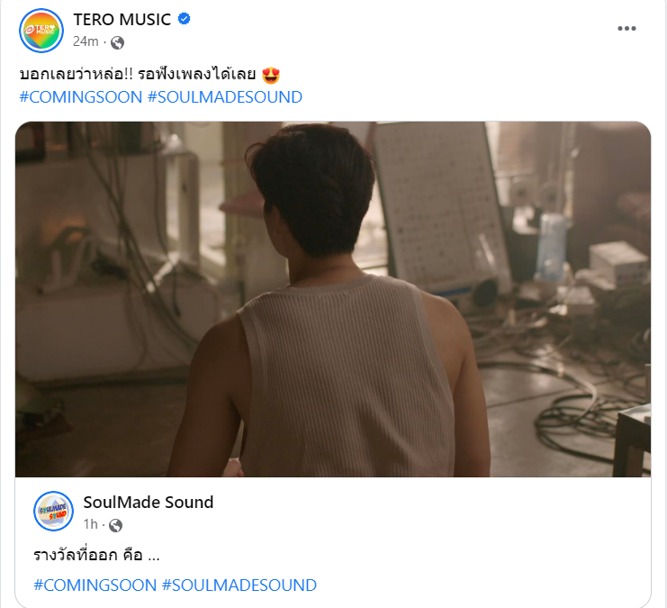 อุ๊ย!! ค่าย SoulMade Sound สังกัด TERO MUSIC ออกมาโพสต์ภาพพระเอกหนุ่มปริศนาพร้อมข้อว่า “ รางวัลที่ออกคือ …COMING SOON #SoulMadeSound ” แม้จะเป็นแค่ภาพนั่งหันหลัง ก็ทำสาวๆชาวโซเซียลใจละลาย กดไลค์ใส่เลิฟคอมเมนต์กันรัว เพราะดาเมจแรงเกินต้าน ออร่ากล้ามแขนแน่นเข้าตาเหลือเกินพ่อคุณเอ๊ย… เอ๊ะหรือว่าเร็วๆ นี้พระเอกคนนี้จะมีผลงานเพลงออกมาให้แฟนๆได้ฟัง…ซึ่งทางด้าน “เอก -Season Five” ผู้บริหารค่าย ก็ได้โพสต์ทวิตเตอร์อย่างตื่นเต้นว่า “ขอบอกว่าเซอร์ไพรส์มาก ที่ได้ร่วมงานกัน ร้องเพราะ เสียงคือจัดให้ได้ตามสั่งมาก ไอเลิฟ ใครน้า ลองเดามั้ยล่ะ” โอ่ว…บิ้วมาแบบนี้ตั้งหน้าตั้งตารอกันเลยจ้ะสาวๆ ว่าแต่พระเอกคนนี้เป็นใครกันแน่ที่จะมาเดบิวต์จับไมค์เป็นศิลปินครั้งแรก รับรองว่างานนี้มีเซอร์ไพรส์แน่นอน!!