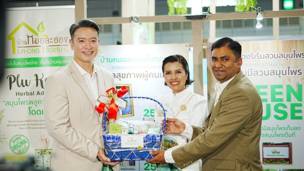“ศิริวิไล (บัวศิริ) แอนกาดิ” กล่าวว่า“สมุนไพรบ้านหมอละอองของเรามีเด่นทุกด้านเลยค่ะ เช่น กลุ่มดูแลอาการต่างๆ ตั้งแต่อาการปวดเมื่อย ขับปัสสาวะ ริดสีดวง สะเก็ดเงิน ผิวหนังเรื้อรัง สำหรับงานนี้แนะนำสินค้าขายดีตลอดกาลก็จะเป็นชุดพลูคาวแอ๊ดวานซ์ค่ะ ชุดนี้เป็นสมุนไพรสำหรับดูแลผิวให้ชุ่มชื้น มีพลูคาวเป็นสมุนไพรเด่นๆ พลูคาว เราเรียกว่าเป็นราชาของสมุนไพรไทย แพทย์แผนไทยนำมาใช้รักษาได้หลายโรค เมื่อนำมาใช้ดูแลผิวก็ช่วยลดอาการผิวอักเสบ ผิวลอกเป็นขุยเรื้อรัง จากโรคต่างๆ เช่น สะเก็ดเงินได้ค่ะ และในครั้งนี้พิเศษมากๆ สำหรับการเปิดตัวแบรนด์แอมบาสเดอร์คนแรก ที่ต้องเป็นคุณชายก็คือ เรามีโอกาสได้ดูละครผลงานของคุณชาย จากบท หมอทองคำ ทำให้เรามีความเชื่อมั่นว่าคุณชายจะสามารถเป็นตัวแทนถ่ายทอดความเป็นบ้านหมอละอองออกมาได้ดีอย่างแน่นอนค่ะ”