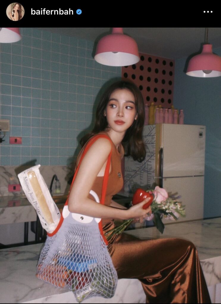 ฟากของสาว “ใบเฟิร์น” เองก็มีการเคลื่อนไหว โพสต์ภาพตัวเองแบบน่ารักสดใส แคปชั่นเป็นอิโมจิรูปผลไม้ และผักต่างๆ