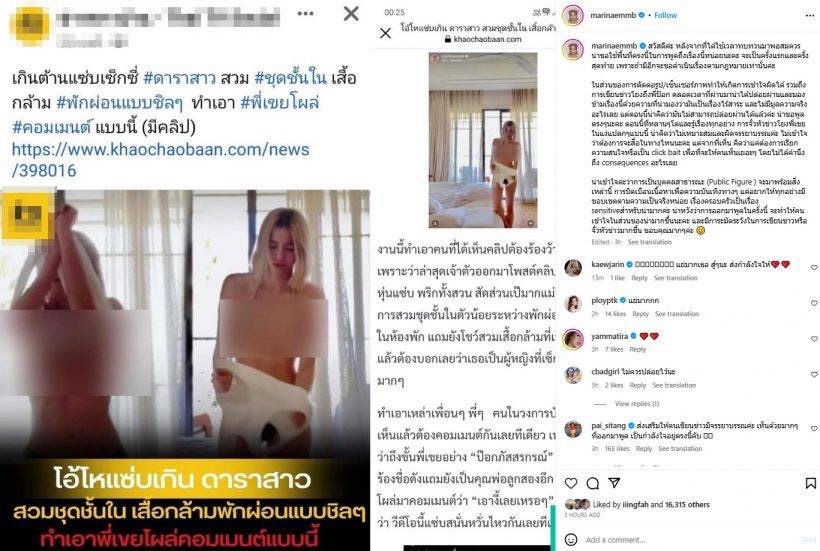 ไม่ขอทน! นักร้องสาวสวย”มารีน่า” ฟาดแรงหยุดเสนอข่าวบิดเบือดโยงพี่เขย ลั่นหากไม่หยุดขู่จ่อฟ้องดำเนินคดี