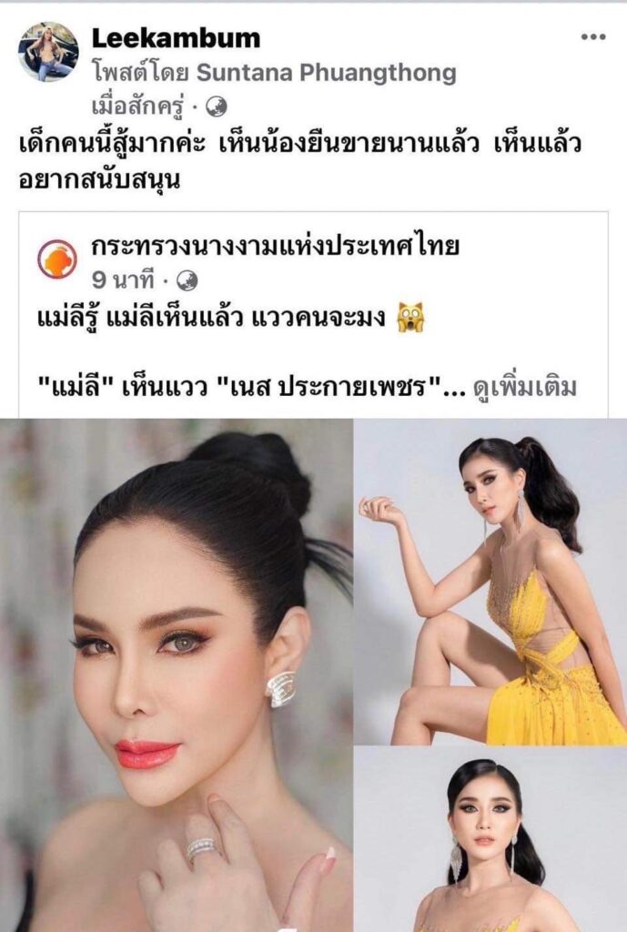 ทำให้เห็นแบบนี้แล้ว แม่ลี อดไม่ได้ที่จะสนับสนุน สาวผู้พยายามทำฝันให้เป็นจริง โดยสนับสนุนให้เธอได้เป็นอีกคนได้รับสิทธิในครั้งนี้ เพราะแม่ลีบอกว่า เห็นแวว ว่าเนสจะเป็นนางงามในแบบของแกรนด์ได้ และสามารถต่อยอดความสามารถที่มีในวงการบันเทิงได้แน่นอน ซึ่งแม่ลีเองก็มีลูกสาวเหมือนกัน จึงตัดสินใจไม่รอช้า บอกอีกว่า อยากให้โอกาส ไม่ว่าจะอาชีพไหน ก็เป็นนางงามหรือทำงานในวงการบันเทิงได้ ถ้าตั้งใจและพยายาม ยิ่งเป็นลิเกไทยแล้ว คิดว่าคงพาศิลปวัฒนธรรมตรงนี้เผยแพร่ได้ดี