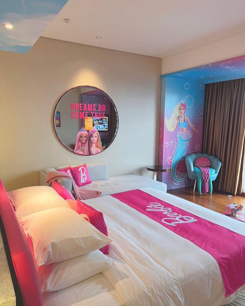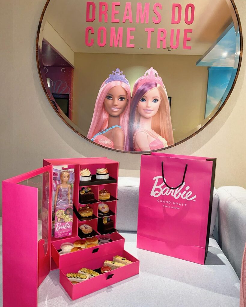 ล่าสุด สาวโฟร์ ทุ่มทุนสร้าง ด้วยการจองตั๋วบินตรงไปยังโรงแรม แกรนด์ ไฮแอท ที่กรุงกัวลาลัมเปอร์ ประเทศมาเลเซีย เพราะโรงแรมแห่งนี้มีการตกแต่งห้องพักเป็นธีมของบาร์บี้สีชมพูทั้งห้อง เพื่อให้สาวกบาร์บี้ได้มาสัมผัสบรรยากาศที่ตัวเองชื่นชอบโดยเฉพาะ