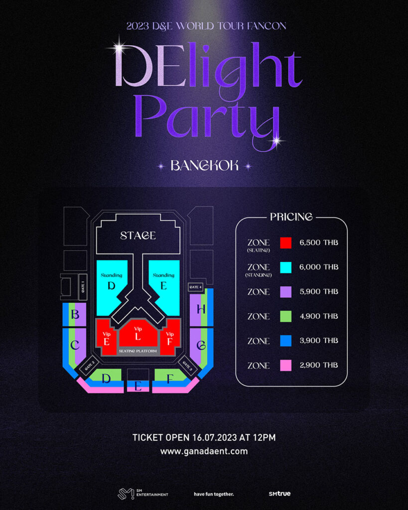 หน้าฝนปีนี้เตรียมตัวให้พร้อม และไปสนุกกับคอนเสิร์ต D&E WORLD TOUR FANCON – [ DElight Party ] IN BANGKOK กันได้ เปิดจำหน่ายบัตรแล้ว ตั้งแต่วันที่ 16 กรกฎาคม 2566 ทางเว็ปไซต์ www.ganadaent.com บัตรราคา : 2900, 3900, 4900, 5900, 6000 และ 6500 บาท สอบถามข้อมูลเพิ่มเติม หรือ ติดตามข่าวสาร และรายละเอียดเพิ่มเติมของคอนเสิร์ตได้ทางเว็ปไซต์ www.ganadaent.com