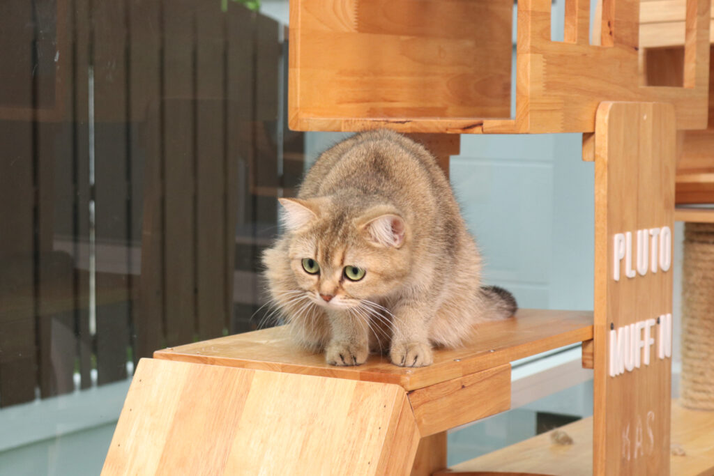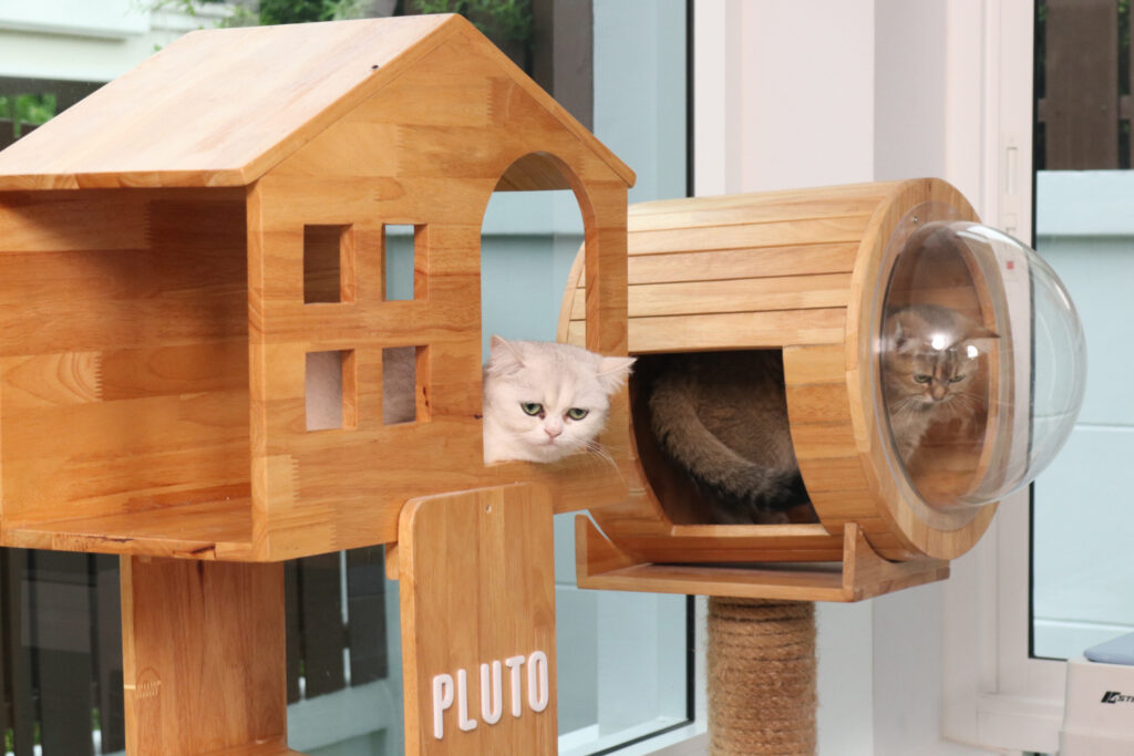 คริส : จริงๆ รักหมดเลย ถ้าแบบลำเอียงเลยก็พูลโตเนี้ยละครับ คือคริสเป็นคนแพ้ขนนะครับ เป็นภูมิแพ้แรงมากซึ่งตอนซื้อพูลโตมาไม่เป็นเลย แต่ทีนี่เราก็อยากได้ “มัฟฟิน” ขาสั้นไง แล้วก็อยากได้แมวตัวที่ 2 มาเป็นเพื่อนกัน แต่พอซื้อมาสักพักตัวเองเหมือนเริ่มป่วยไม่สบายเป็นภูมิแพ้บ่อยก็เลยต้องสร้างห้องแมว ให้แมวที่มีขนอยู่ในห้องนี้ แต่พูลโตคือวิ่งได้หมดเลย ก็จะปล่อยตัวอื่นๆ เข้าไปเล่นในบ้านได้บางเวลาแต่ว่าจะไม่ให้เข้าห้องนอนเลย แต่พูลโตคือนอนด้วยกันกับคริส