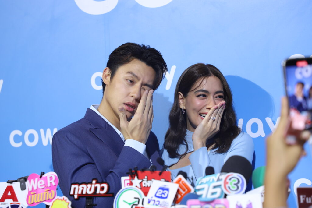 คิม : เราคือเจ้าของบ้าน ขอบคุณทุกกำลังใจ พี่ๆ สื่อด้วย ที่อยู่กับเรามาตั้งนานแล้ว ตั้งแต่จีบกัน เป็นกำลังใจให้เรามาตลอด ซัปพอร์ตกัน เราก็รู้สึกแฮปปี้มาก ตอนนี้ใกล้ถึงวันมากๆ เดี๋ยวเราจะมาบอกพี่ๆ อีกที เราขอบคุณแฟนๆ ด้วยนะคะ