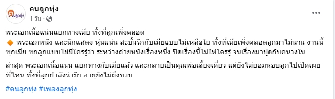 มีเรื่องมาให้ขาเม้าท์ต้องทำการบ้านกันอีกแล้ว เมื่อเพจดังอย่าง คนลูกทุ่ง ได้ออกมาโพสต์ข้อความเปิดประเด็นร้อน ที่ทำเอาช็อกวงการบันเทิง เกี่ยวกับพระเอกคนหนึ่ง ที่ซุกลูกเมียไว้ไม่มีใครรู้ ก่อนที่จะสะบั้นทิ้งไม่เหลือเยื่อใย ทั้งที่เพิ่งคลอดลูก ตอนนี้กลายเป็นพ่อเลี้ยงเดี่ยว แต่ยังไม่ยอมเปิดตัวลูกที่ไหน