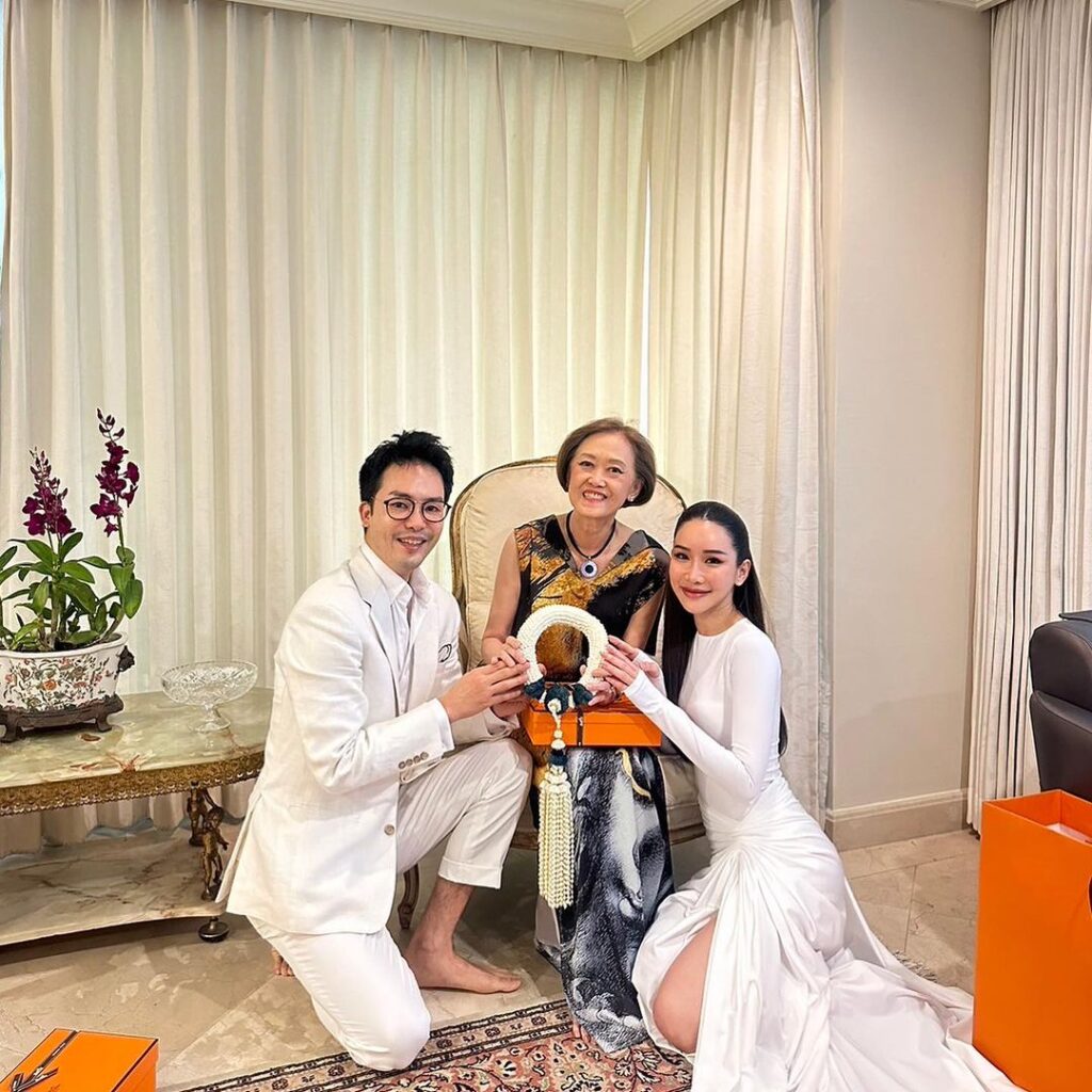 โดยว่าที่เจ้าสาว โอปอล์ ปานหทัย ได้โพสต์ภาพพร้อมกับเขียนข้อความไว้ว่า “I can never thank you enough for opening your hearts to me and welcoming me into your family. I’m blessed with being surrounded by the most amazing people. รักที่สุด ขอบคุณป๊าแม่พี่พี่ที่น่ารักนะคะ รู้สึกโชคดีมาก ๆ ที่ได้รับการต้อนรับที่อบอุ่นขนาดนี้ สัญญาจะดูแลให้ดีที่สุด”