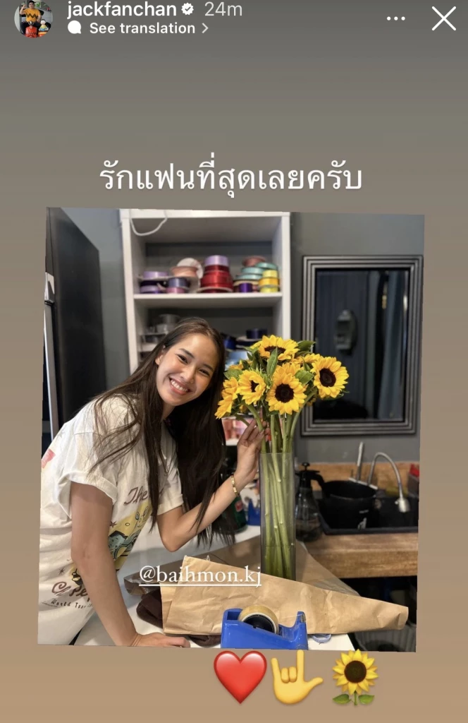 ส่วนทางด้าน แจ็ค แฟนฉัน ได้รีโพสต์ข้อความดังกล่าวพร้อมแสดงความคิดเห็นเช่นกัน ร่วมถึงได้มีการโพสต์รูปภาพของใบหม่อนลงในไอจีสตอรี่ และระบุข้อความหวาน “รักแฟนที่สุดเลยครับ” ก่อนแท็กไปหาสาวใบหม่อน โดยสาวใบหม่อนออกมารีโพสต์กลับ พร้อมเขียนข้อความอีกว่า “แปลกๆ อีกแล้วนะ” งานนี้ก็มีแฟนๆเข้ามาชมความสวยน่ารักของเธอมากมาย พร้อมแซวแปลกจริงๆด้วย