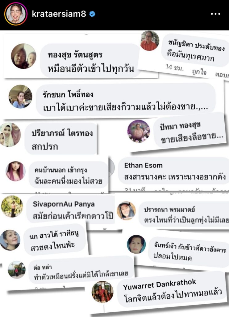 ล่าสุดสาว “กระแต” ได้แคปคอมเมนต์ต่างๆนาๆของเกรียนคีย์บอร์ดทั้งหลายที่เข้ามาคอมเมนต์ทั้งต่อว่า ดูถูก และเหยียดเธอลงในอินสตาแกรม พร้อมกับตอบกลับแบบเชิ่ดๆว่า…