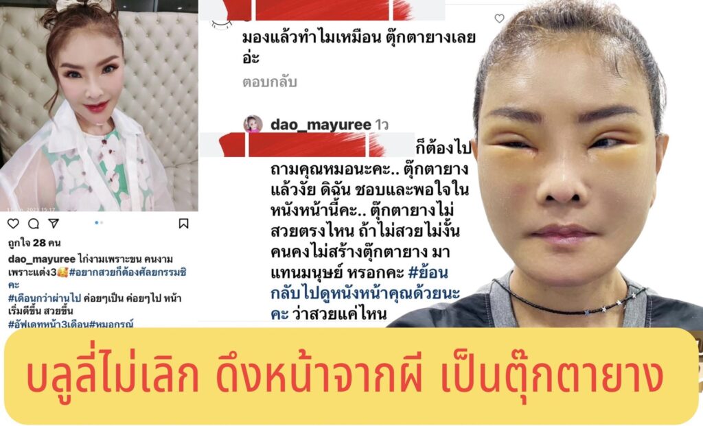 เป็นประเด็นฟาดกันกลางไอจีกันเลย สำหรับนักร้องลูกทุ่งชื่อดังรุ่นใหญ่ “ดาว มยุรีย์” ที่โพสต์ไอจีส่วนตัวเป็นรูปตนเองแต่งหน้าสวยฉ่ำแล้วเขียนแคปชั่นว่า “ไก่งามเพราะขน คนงามเพราะแต่ง3#อยากสวยก็ต้องศัลยกรรมซิคะ เดือนกว่าผ่านไปค่อยเป็นค่อยไป หน้าเริ่มดีสวยขึ้น”