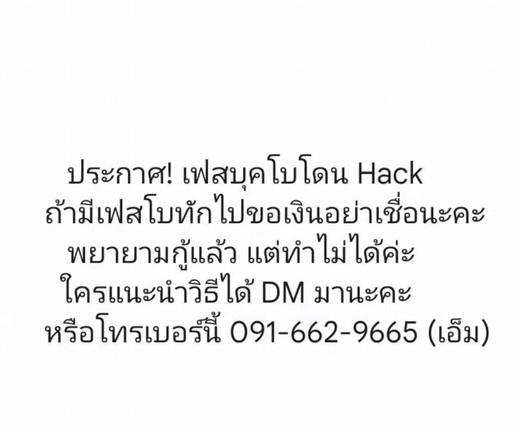 นักแสดงสาวสวย“โบวี่ อัฐมา”โร่แจ้งเฟซบุ๊กโดนแฮก ลั่นถ้าทักไปขอเงินวอนอย่าหลงเชื่อ