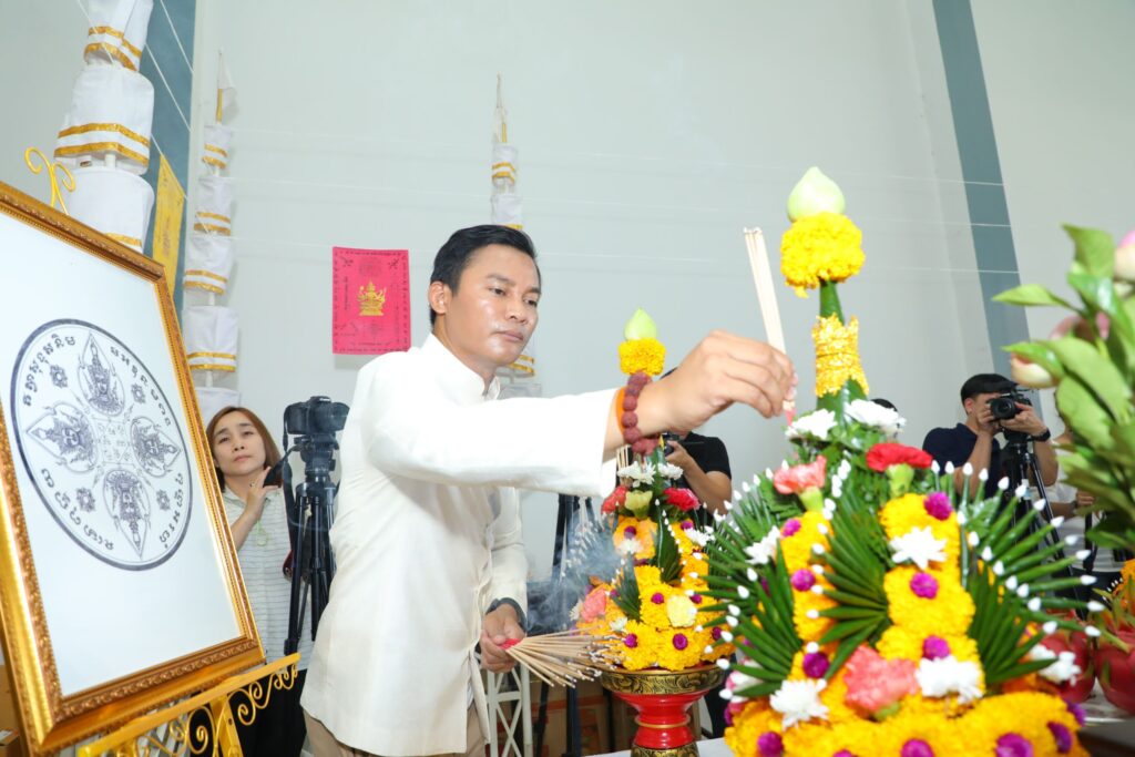 เมื่อถึงฤกษ์ดี พราหมณ์ได้เริ่มพิธีบวงสรวง และทำพิธีพลีมวลสาร โดยมี “จา-พนม” ประธานการจัดสร้างฯ พร้อมด้วย “แซงค์”ปฏิวัติ เรืองศรี และคณะร่วมพิธี ซึ่งขณะทำพิธีก็ได้เกิดปรากฏการณ์พระอาทิตย์ทรงกลด สร้างความอัศจรรย์ให้กับผู้ร่วมพิธีอย่างมาก