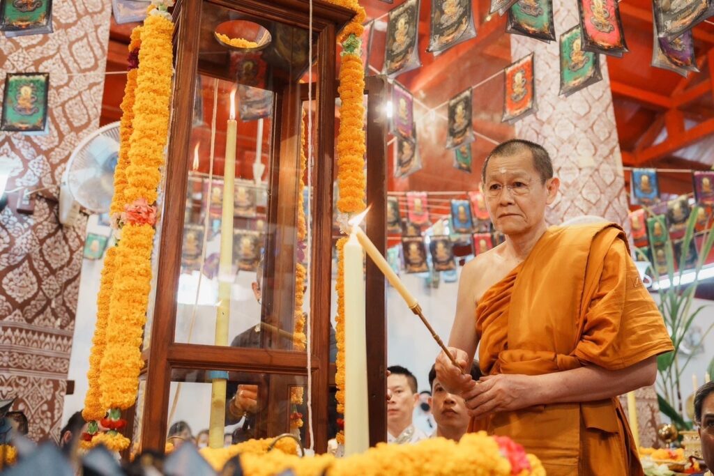ซึ่งเป็นการส่งมอบวัตถุมงคล “ท่านพ่อจตุคามรามเทพ” รุ่นปาฏิหาริย์ เหนือดวง องค์ราชันย์ดำจตุคามรามเทพ จ้าวแห่งทะเลใต้ ให้แก่ผู้ที่สนใจมาร่วมเป็นสะพานบุญในครั้งนี้ โดยปัจจัยที่ได้นำไปบูรณะพระประธานและรอบๆ บริเวณวัดที่ตอนนี้กำลังทรุดโทรม ภายในงานยังได้ “อั้ม อธิชาติ, ติ๊งโน๊ต ฐิติพงศ์” มาร่วมพิธีศักดิ์สิทธิ์ในครั้งนี้ด้วย