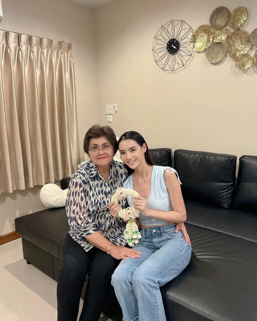 “คือครอบครัวเรา จะมีความคล้ายกันตรงที่เราจะไม่ได้หวานกัน หรือบอกรักกันบ่อย ๆ แต่เราต่างรู้ว่าเรารักกัน อย่างมุกกับคุณแม่ก็เหมือนกันเลย คืออาจจะไม่ค่อยได้บอกรัก แต่ทุกสิ่งที่คุณแม่ทำให้มุกก็รู้ว่าท่านรักเรามาก เหมือนกับที่ท่านก็รู้ว่ามุกรักท่านมากเช่นกัน อย่างตอนนี้ที่มุกเข้ามาทำงานในวงการ มุกรู้ว่าคุณแม่ก็ติดตามดูผลงานของมุกมาตลอด รวมถึงในการทำงาน อย่างเวลาถ่ายทำละคร ในเวลานี้ที่มุกกำลังถ่ายทำละครเรื่อง ไฟน้ำค้าง คุณแม่ก็จะเป็นกำลังใจที่ดีที่สุดของมุกมาเสมอ ถ้าหากว่ามุกขออะไรได้ มุกขอให้คุณแม่มีสุขภาพที่แข็งแรง และอยู่ด้วยกันไปนาน ๆ มุกเองก็จะตั้งใจทำในสิ่งที่ตัวเองรับผิดชอบให้ดีที่สุดค่ะ สุขสันต์วันแม่นะคะ รักแม่ค่ะ”