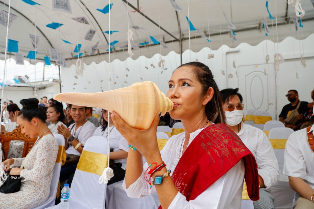 บรรยากาศภายในงานเต็มไปด้วยความอลังการงานสร้างของพิธีบวงสรวง และพิธีเบิกเนตรโดยพระอาจาย์ชื่อดังที่เมตตามาร่วมพิธีอย่างคับคั่ง อาทิ พระภาวนาวชิรมงคล วิ.รองเจ้าคณะจังหวัดลพบุรี เจ้าอาวาสวัดป่าธรรมโสภณ อ.เมือง จ.ลพบุรี, พระครูยติธรรมมานุยุต พระอาจารย์แป๊ะวัดสว่างอารมณ์ อ.นครชัยศรี จ.นครปฐม, หลวงปู่อุดมทรัพย์วัดเวฬุวันธรรมาราม อ.พยุห์ จ.ศรีสะเกษ, พระอาจารย์เทวฤิทธิ์ อภิญาโน สถานธรรมเทวธรรมมารามป่ามะพร้าว อ.ครบุรี จ.นครราชสีมา, พระครูสมุห์คำนวณ ปริสุทโธ เจ้าอาวาสวัดแก้วเจริญ อ.อัมพวา จ.สมุทรสงคราม, พระครูวินัยธร ดุสิต สุจิณโณ วัดอุทุมพราราม อ.เมือง จ.สุพรรณบุรี และ พระมนัส ญาณสิทโธ (อาจารย์ตี๋) วัดป่าเวฬุวัน จ.นครราชสีมาพร้อมด้วยเหล่าอาจารย์สายมู สายเวทย์ สายเทพ มาร่วมพิธีกันเพียบ ไม่ว่าจะเป็น อาจารย์วันชัย สุพรรณ เจ้าของรายการ คุยเฟื่องเรื่องพระ ทาง FM 97.0 MHz l..เอฟ.เอ็ม ๙๗..เมกะเฮิรตช์ กรมประชาสัมพันธ์, อาจารย์สรณ์ เสน่หานะหน้าทอง เจ้าของเรือนพระสุรินฤาชัย อ.อู่ทอง จ.สุพรรณบุรี, อาจารย์พิมพ์ เศรษฐีมหาลาภ, อาจารย์เหมราช บ้านเทพรักษา, ฤาษีเกียงไกร พลายสยาม, ฤาษีพันตา วังแก้วมณีโชติ อาจารย์ ดร.หมออ้อย อาจารย์แม่GPS, อาจารย์พงษ์ สิทธิพงษ์ เนิ้อนาทองสกุล, อาจารย์ต้น ตรีศูล และ อาจารย์ วิ เกษศิณีเป็นต้น