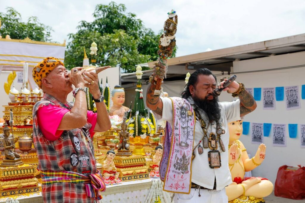 บรรยากาศภายในงานเต็มไปด้วยความอลังการงานสร้างของพิธีบวงสรวง และพิธีเบิกเนตรโดยพระอาจาย์ชื่อดังที่เมตตามาร่วมพิธีอย่างคับคั่ง อาทิ พระภาวนาวชิรมงคล วิ.รองเจ้าคณะจังหวัดลพบุรี เจ้าอาวาสวัดป่าธรรมโสภณ อ.เมือง จ.ลพบุรี, พระครูยติธรรมมานุยุต พระอาจารย์แป๊ะวัดสว่างอารมณ์ อ.นครชัยศรี จ.นครปฐม, หลวงปู่อุดมทรัพย์วัดเวฬุวันธรรมาราม อ.พยุห์ จ.ศรีสะเกษ, พระอาจารย์เทวฤิทธิ์ อภิญาโน สถานธรรมเทวธรรมมารามป่ามะพร้าว อ.ครบุรี จ.นครราชสีมา, พระครูสมุห์คำนวณ ปริสุทโธ เจ้าอาวาสวัดแก้วเจริญ อ.อัมพวา จ.สมุทรสงคราม, พระครูวินัยธร ดุสิต สุจิณโณ วัดอุทุมพราราม อ.เมือง จ.สุพรรณบุรี และ พระมนัส ญาณสิทโธ (อาจารย์ตี๋) วัดป่าเวฬุวัน จ.นครราชสีมาพร้อมด้วยเหล่าอาจารย์สายมู สายเวทย์ สายเทพ มาร่วมพิธีกันเพียบ ไม่ว่าจะเป็น อาจารย์วันชัย สุพรรณ เจ้าของรายการ คุยเฟื่องเรื่องพระ ทาง FM 97.0 MHz l..เอฟ.เอ็ม ๙๗..เมกะเฮิรตช์ กรมประชาสัมพันธ์, อาจารย์สรณ์ เสน่หานะหน้าทอง เจ้าของเรือนพระสุรินฤาชัย อ.อู่ทอง จ.สุพรรณบุรี, อาจารย์พิมพ์ เศรษฐีมหาลาภ, อาจารย์เหมราช บ้านเทพรักษา, ฤาษีเกียงไกร พลายสยาม, ฤาษีพันตา วังแก้วมณีโชติ อาจารย์ ดร.หมออ้อย อาจารย์แม่GPS, อาจารย์พงษ์ สิทธิพงษ์ เนิ้อนาทองสกุล, อาจารย์ต้น ตรีศูล และ อาจารย์ วิ เกษศิณีเป็นต้น