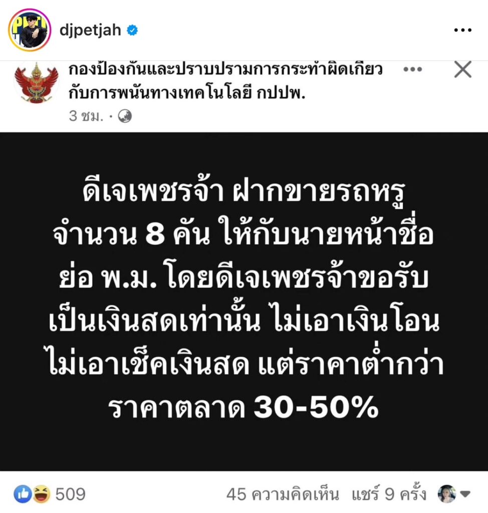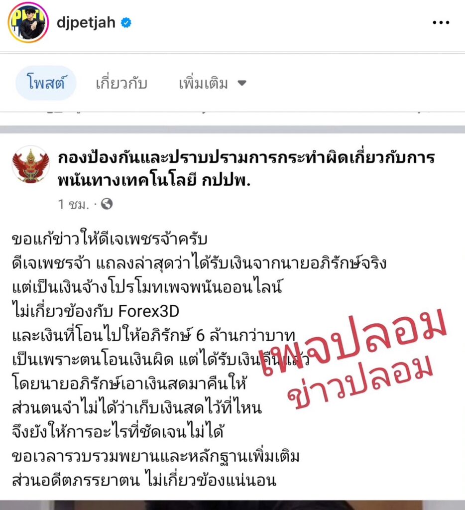 “เพจปลอม ข่าวโคตรปลอม ผมมีนัดกับทาง dsi พรุ่งนี้นะครับ เนื้อหา ในเพจ เท็จ ทั้งหมด และ ผมไม่ได้จะไป ไหนทั้งนั้นนะครับ วันนี้ยังคงทำงานอยู่ ที่กรุงเทพ งงว่า เพจ สมัยนี้สามารถ เขียนอะไร เพื่อทำให้คนอื่นเสียหาย แบบไหนก็ได้เหรอครับ เขียนแบบ คิดเอาเองเลยเหรอครับ มีบอกผม จะขายรถ8คัน ผมไปขายอะไรเมื่อไหร !! บอกย่องเยี่ยมดีเจแมน ผมก้ไม่เคยไป ผมว่าคุณ เขียนสนุกเกินงามไปแล้วนะครับ”