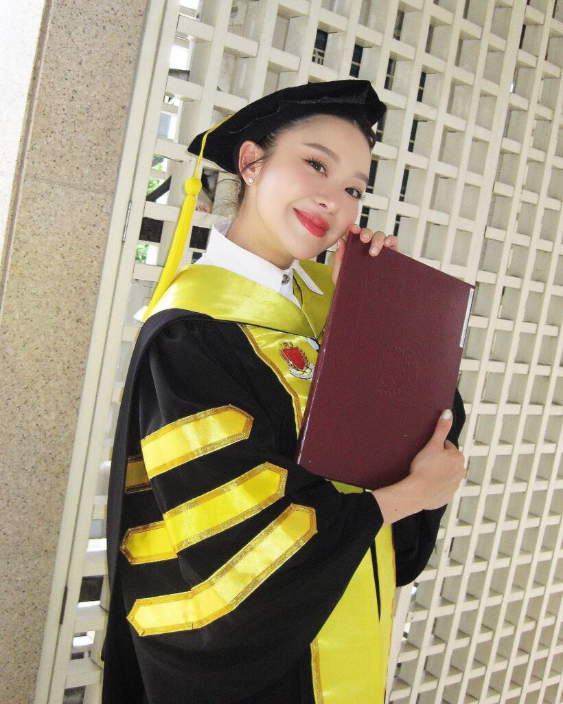 ล่าสุด สาวมายด์ ประสบความสำเร็จอีกขั้นของวชีวิต หลังออกมาโพสต์ภาพตัวเองในชุดครุย พร้อมประกาศข่าวดีผ่านอินสตาแกรมส่วนตัว สำเร็จการศึกษาระดับปริญญาเอกแล้ว จาก Lyceum of the Philippines University มหาวิทยาลัยของประเทศฟิลิปปินส์ พร้อมเขียนแคปชั่นเพียงสั้นๆ ว่า “Officially ดอกเตอร์มายด์ นะคะ”