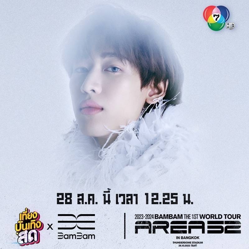 อย่ารอช้า เตรียมกรี๊ดมันออกมา..! แฟน ๆ ช่อง 7HD และเหล่าอากาเซ่ไทย ชอบใจสิ่งนี้ เพราะศิลปินหนุ่มสุดฮอต แบมแบม-กันต์พิมุกต์ ภูวกุล หนึ่งในสมาชิกบอยแบนด์ วง “ก็อตเซเว่น” (GOT7จะมาพูดคุยถึงความพร้อมของเวิลด์ทัวร์คอนเสิร์ตเดี่ยวครั้งแรกในประเทศไทย พร้อมเชิญชวนแฟน ๆ ไปร่วมงาน “2023-2024 BAMBAM THE 1ST WORLD TOUR AREA 52 IN BANGKOK” ที่จะจัดขึ้นในวันที่ 28 ตุลาคมนี้  ด้วยตัวเองแบบสด ๆ กันไปเลย  ในรายการ “เที่ยงบันเทิง สด” วันจันทร์ ที่ 28 สิงหาคมนี้เวลา 12.25 น. ทาง ช่อง  7HD  กด  35   เตรียมล็อควัน เวลา ขีดเส้นใต้ตัวใหญ่ ๆ แล้วมาจอยกัน