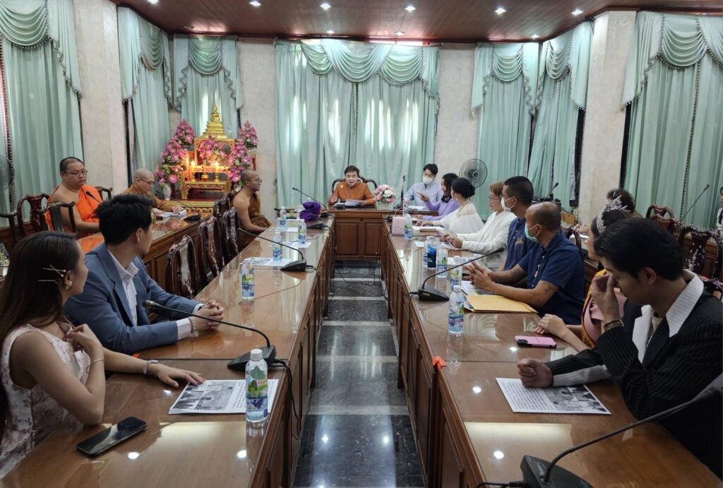 โดยมี ดร. ทวีศักดิ์ เผ่าบัณฑูร รองประธานอนุกรรมการกิจกรรม มจร. พร้อมด้วย ผู้แทนกรมการศาสนา ผู้แทน การท่องเที่ยวแห่งประเทศไทย (ททท.)และผู้แทนวัดพุทธสถานทั้ง5 แห่งในการนี้ยังมีพิธีแต่งตั้ง “ทูตท่องเที่ยววิถีพุทธ” ได้แก่ป้อน-นวลละออง ดอนเสือ2nd Miss Star Thailand2023 ร่วมด้วยนักแสดงจากละคร “มนต์รักลูกทุ่ง” ช่อง 3HD อาทิ เล้ง-ณัฐพล นิลดอนหวาย, เปียโน-สรัลพร ธนินกุลนาถ และ เทเลอร์-วรรณเสริม ศรีสมบัติ ณ ห้องประชุม 205. มจร. วัดมหาธาตุ ท่าพระจันทร์ กรุงเทพฯ